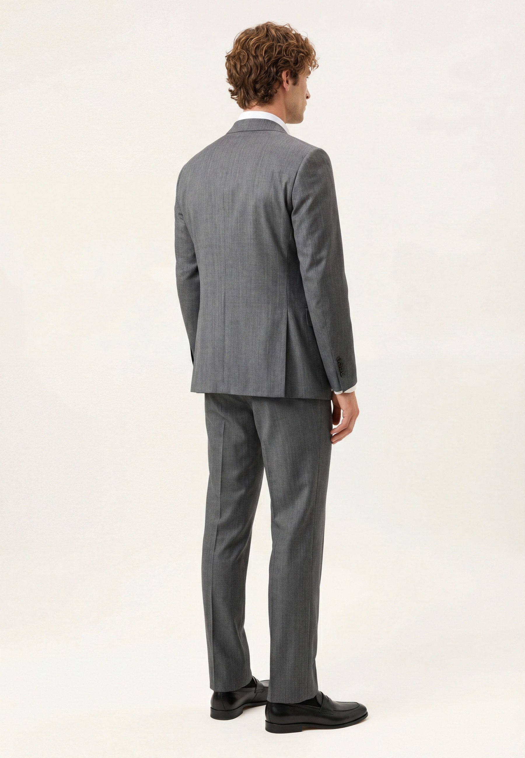 Crafted in a refined herringbone stretch wool, this slim-fit suit blends classic elegance with modern functionality. The blazer features a classic two-button closure, notch lapels with 9cm, flap pockets with double pipings, curved chest pocket, two back vents. Fully lined in personalized Sacoor jacquard with practical interior details. The matching trousers include a waistband with button extension, coin pocket, knife pocket with tonal pic-pic stitching, and two back welt pockets with D-bartacks. The interior waistband features silicone grip tape for enhanced structure, and the bottom is finished without seam. Ideal for the office and any situation where a sharp look matters. Available in regular Fit measurements from size 56 to 62.