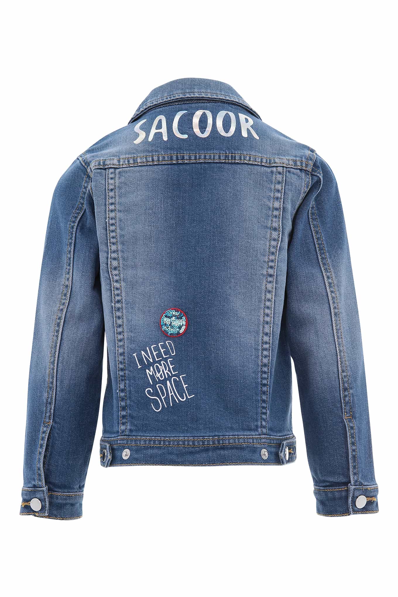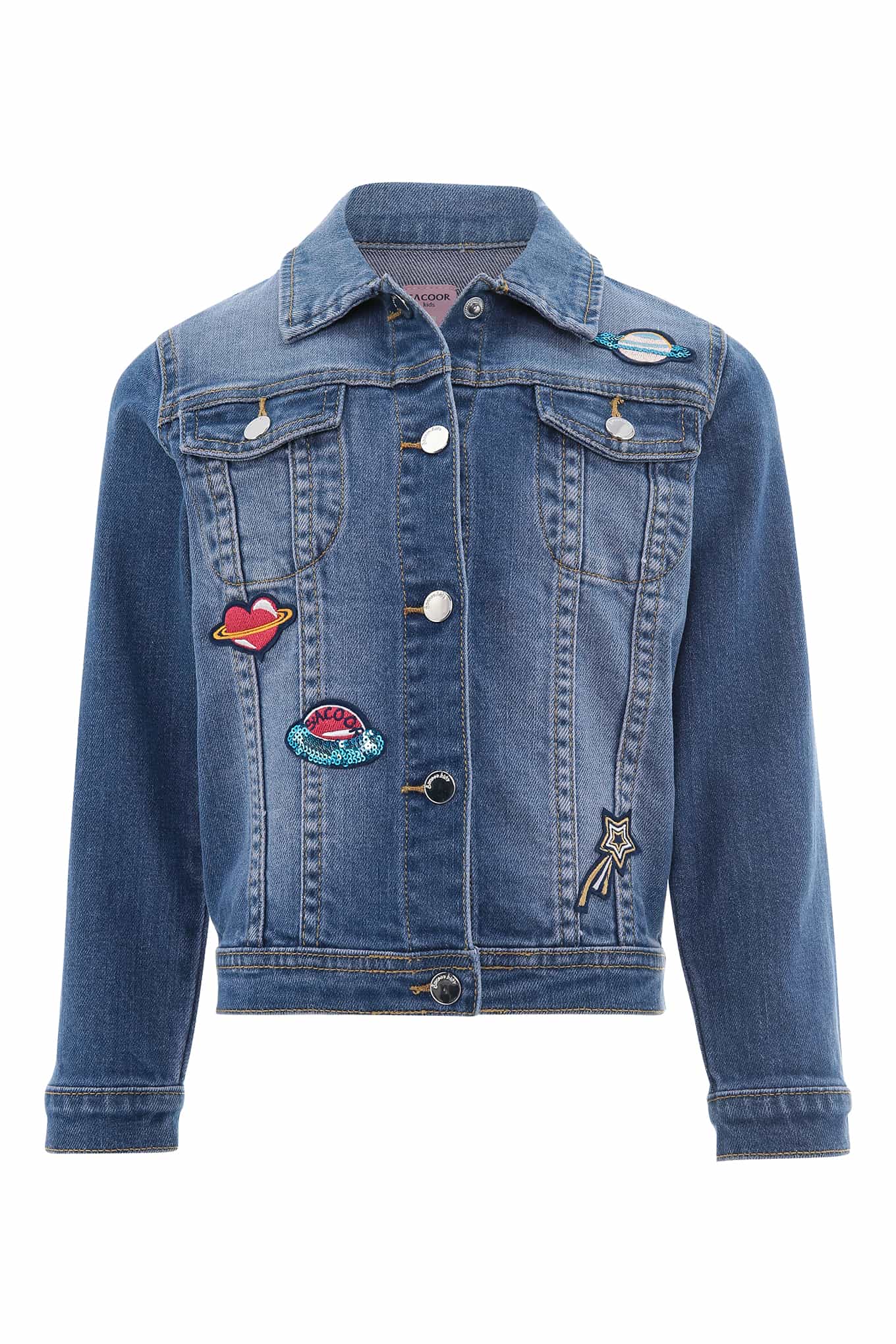 An original jacket. This denim jacket is ideal as part of a more relaxed look. This piece will stand out as part of your look, thanks to its colourful space-themed prints and modern character, making it easy to pair with a casual Sacoor dress. In cotton and elastane to make it pleasant to the touch.