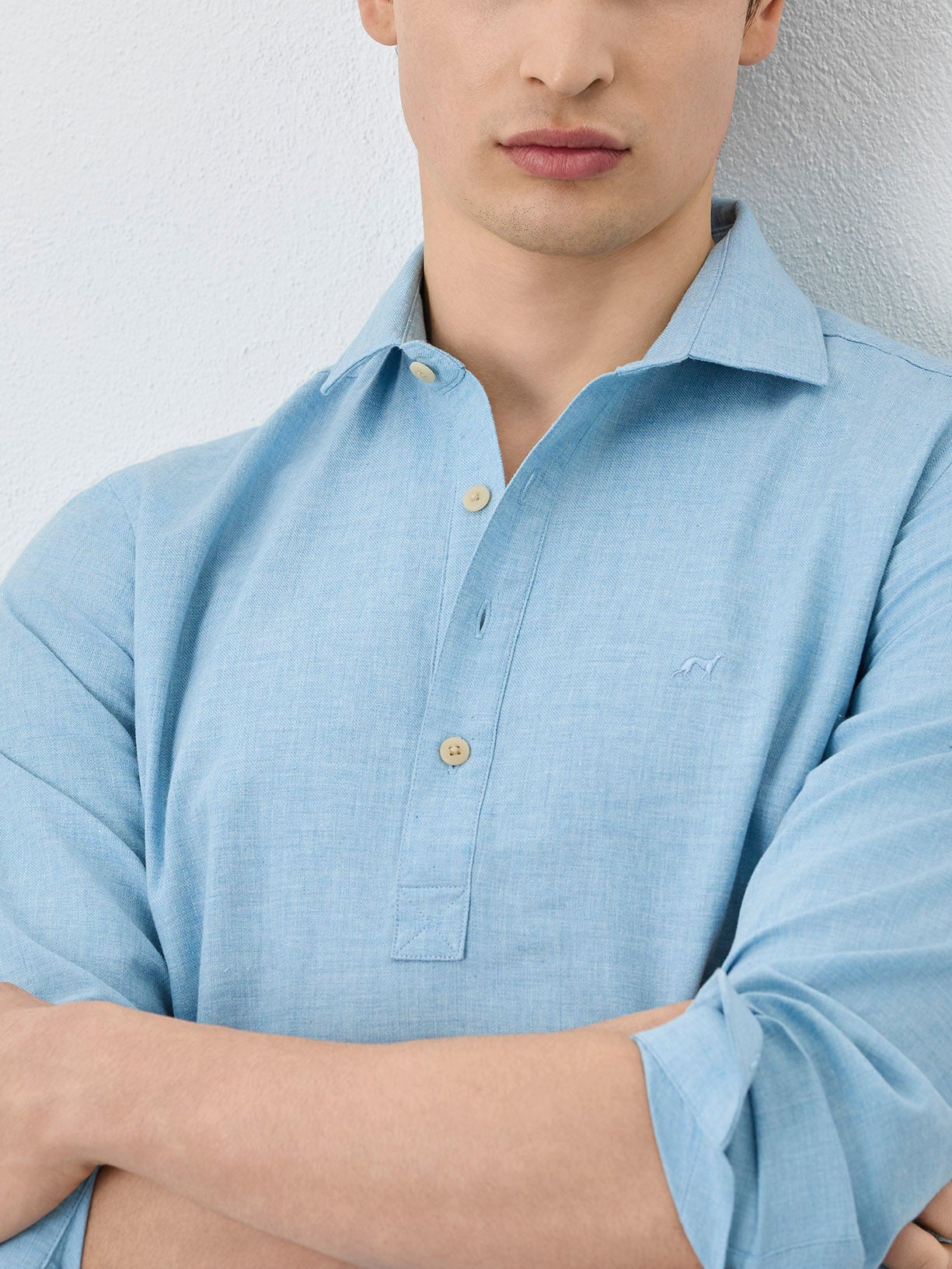 Regular Fit Shirt With Polo Shirt Collar In Cotton-linen Blend
