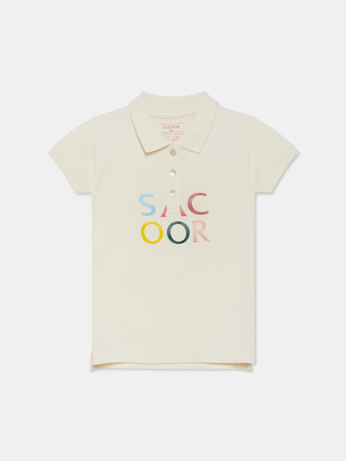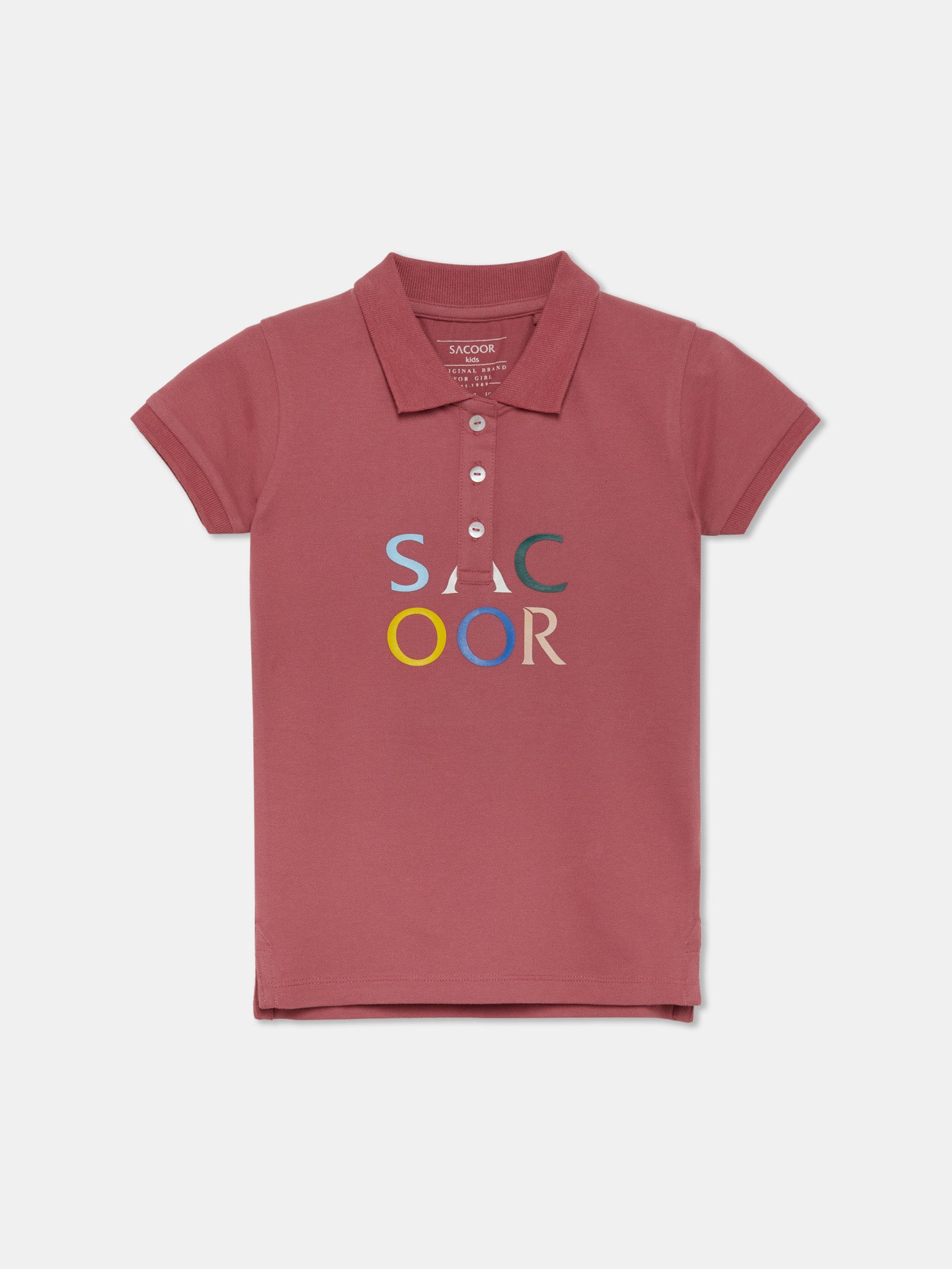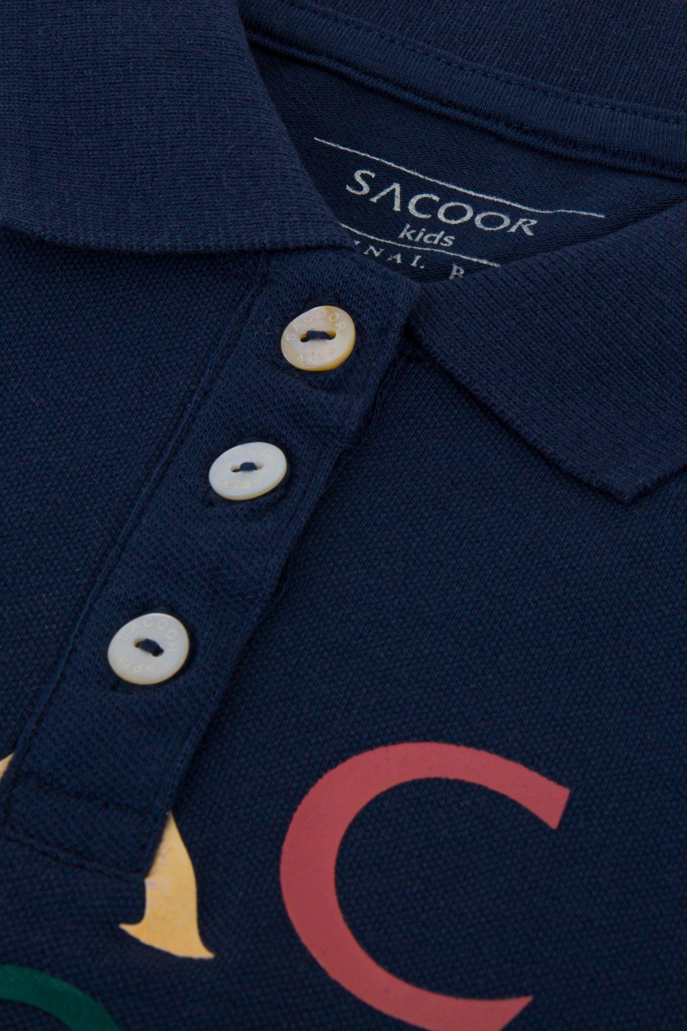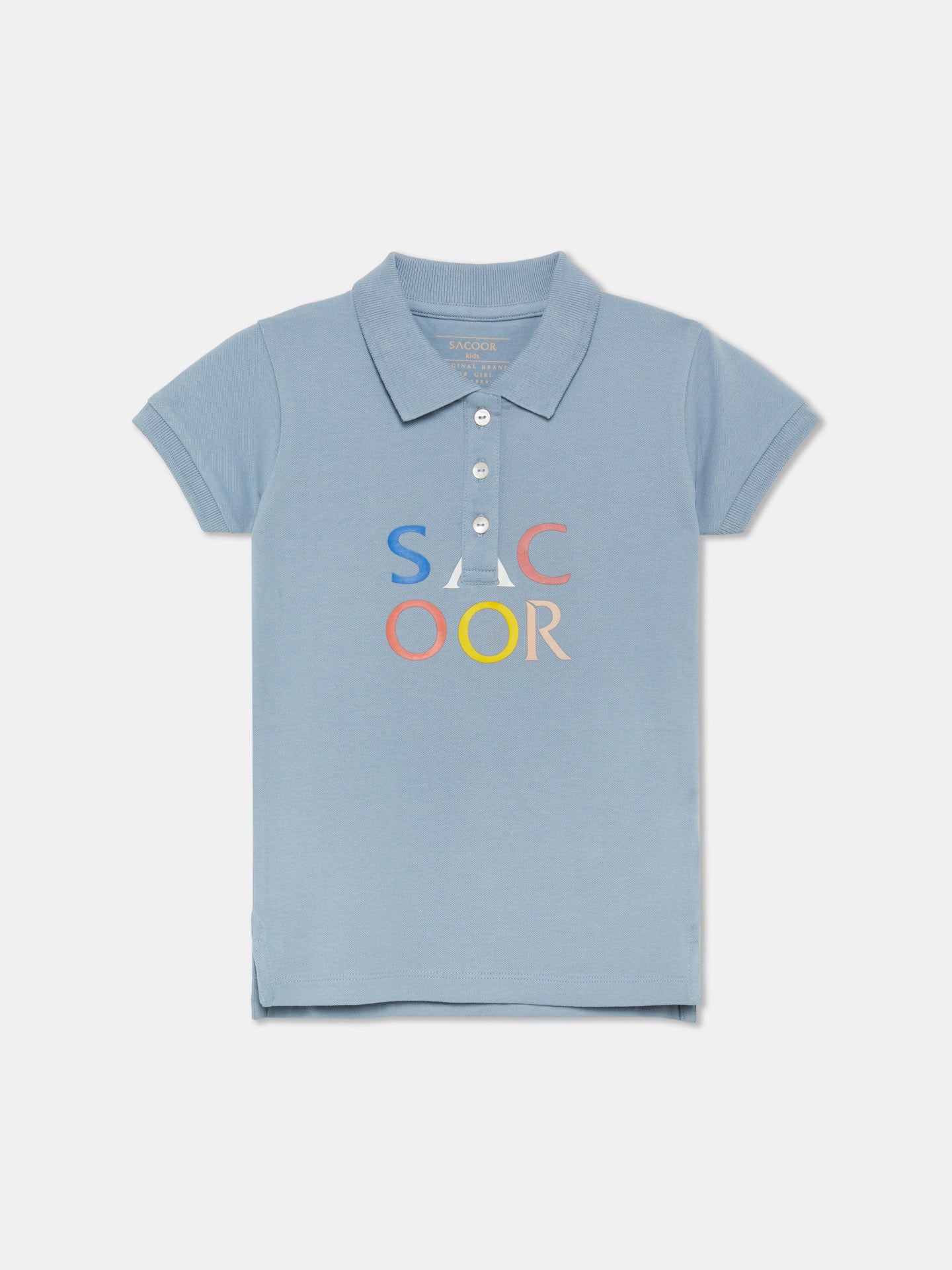 Plain colour regular fit polo-shirt made of 100% cotton piquet. Featuring a rib collar, three-button placket and short sleeves with rib cuffs. Rich details such as Sacoor colourful print at chest.