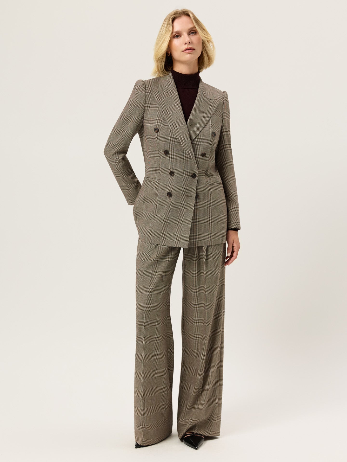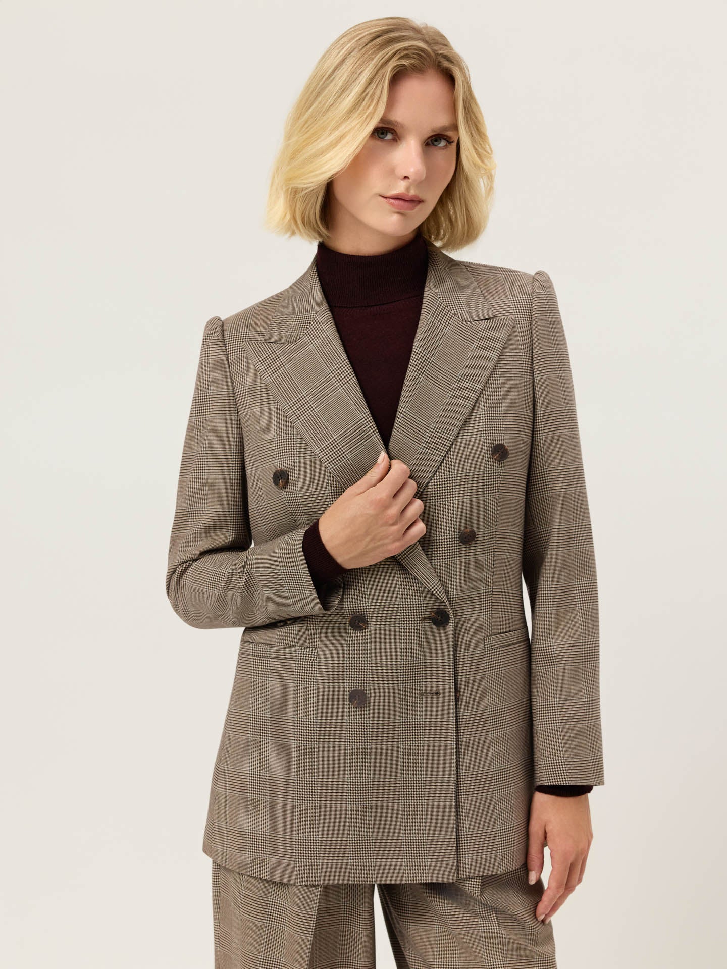 Double-Breasted Blazer In Viscose Blend Checks