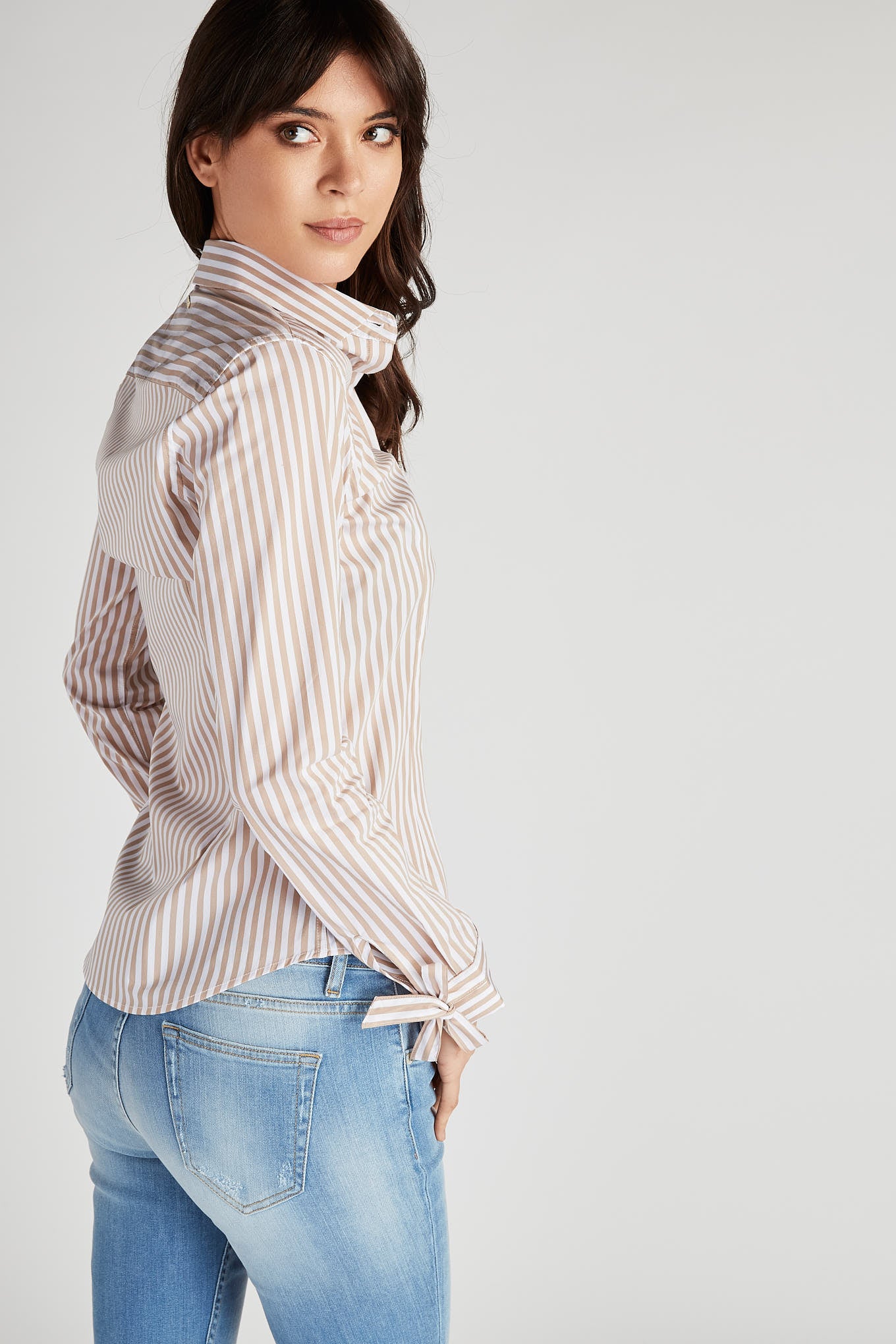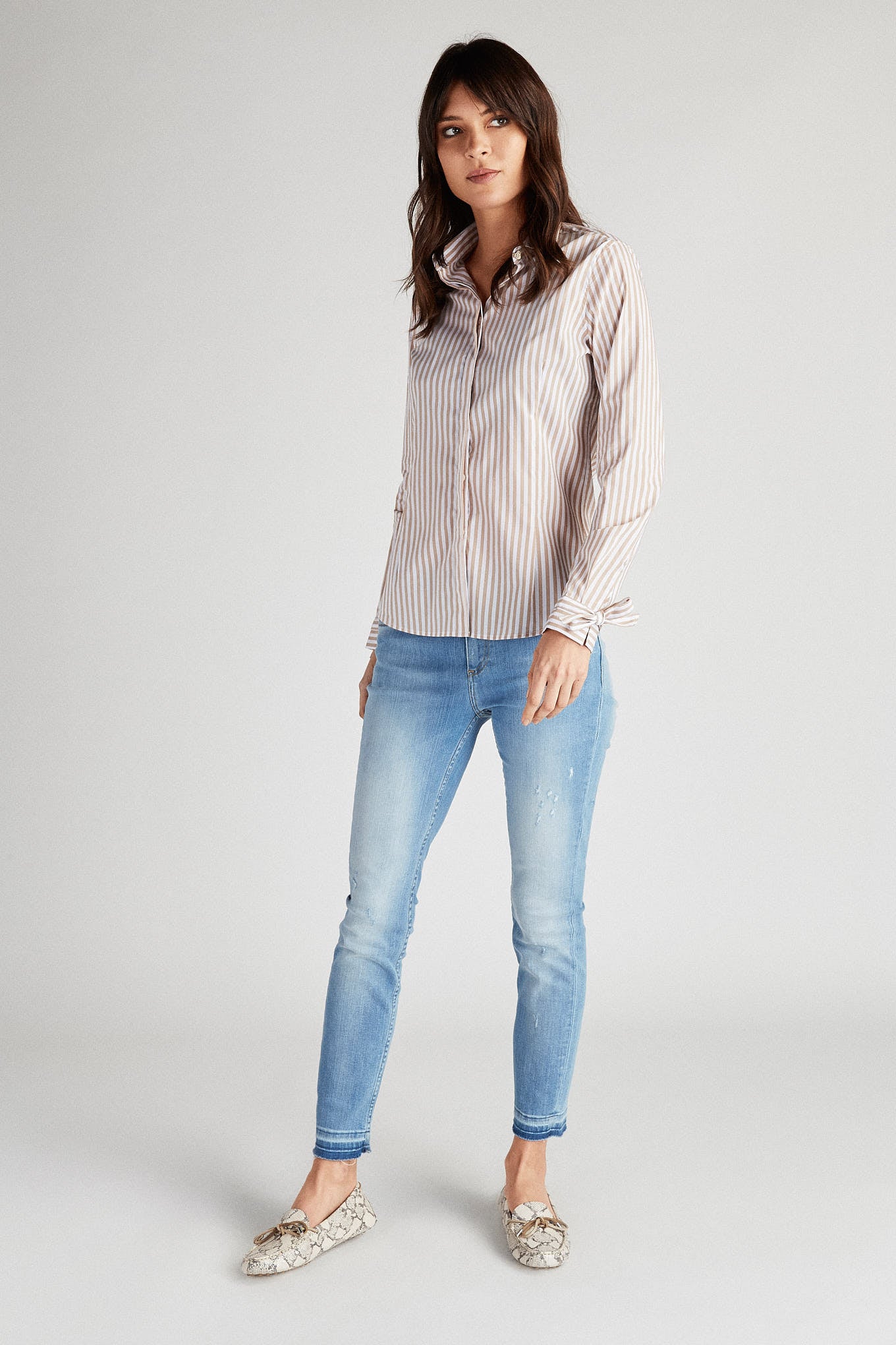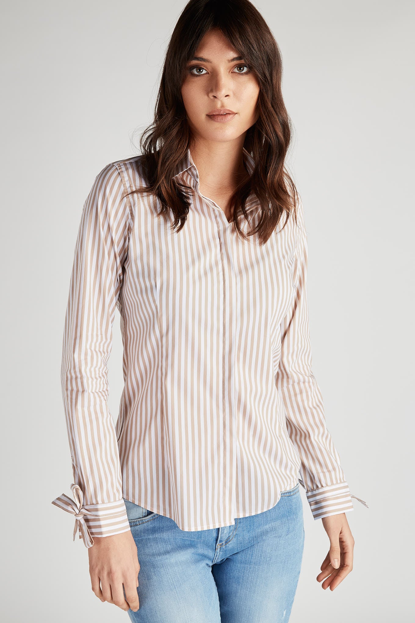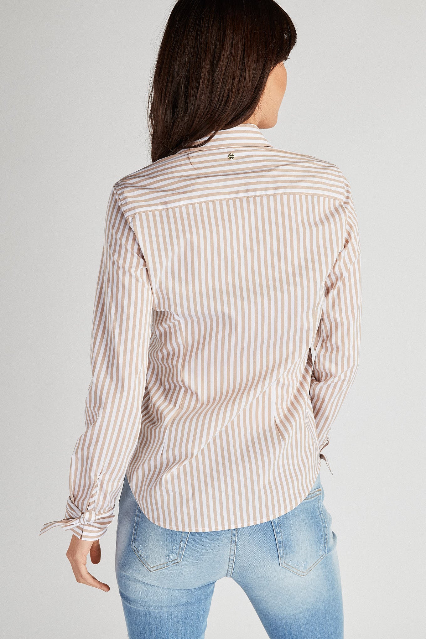 Classic women's shirt with striped pattern and small collar. Stylised button detail with heart effect. Hidden buttons and English stitching. Long sleeve with lace cuff. Sacoor Women's size 36 has a back length of 68 cm and sleeve length of 60 cm. See our Size Guide.