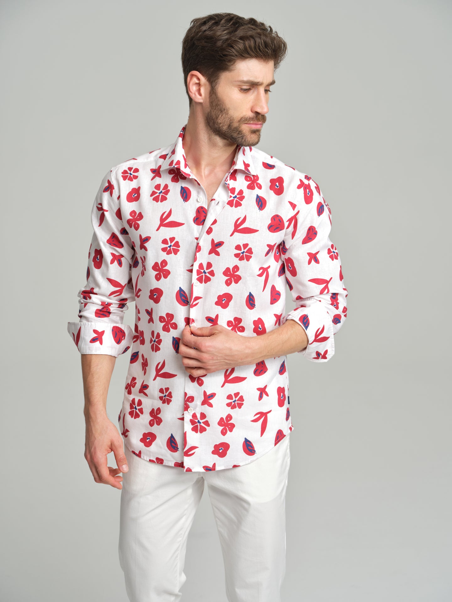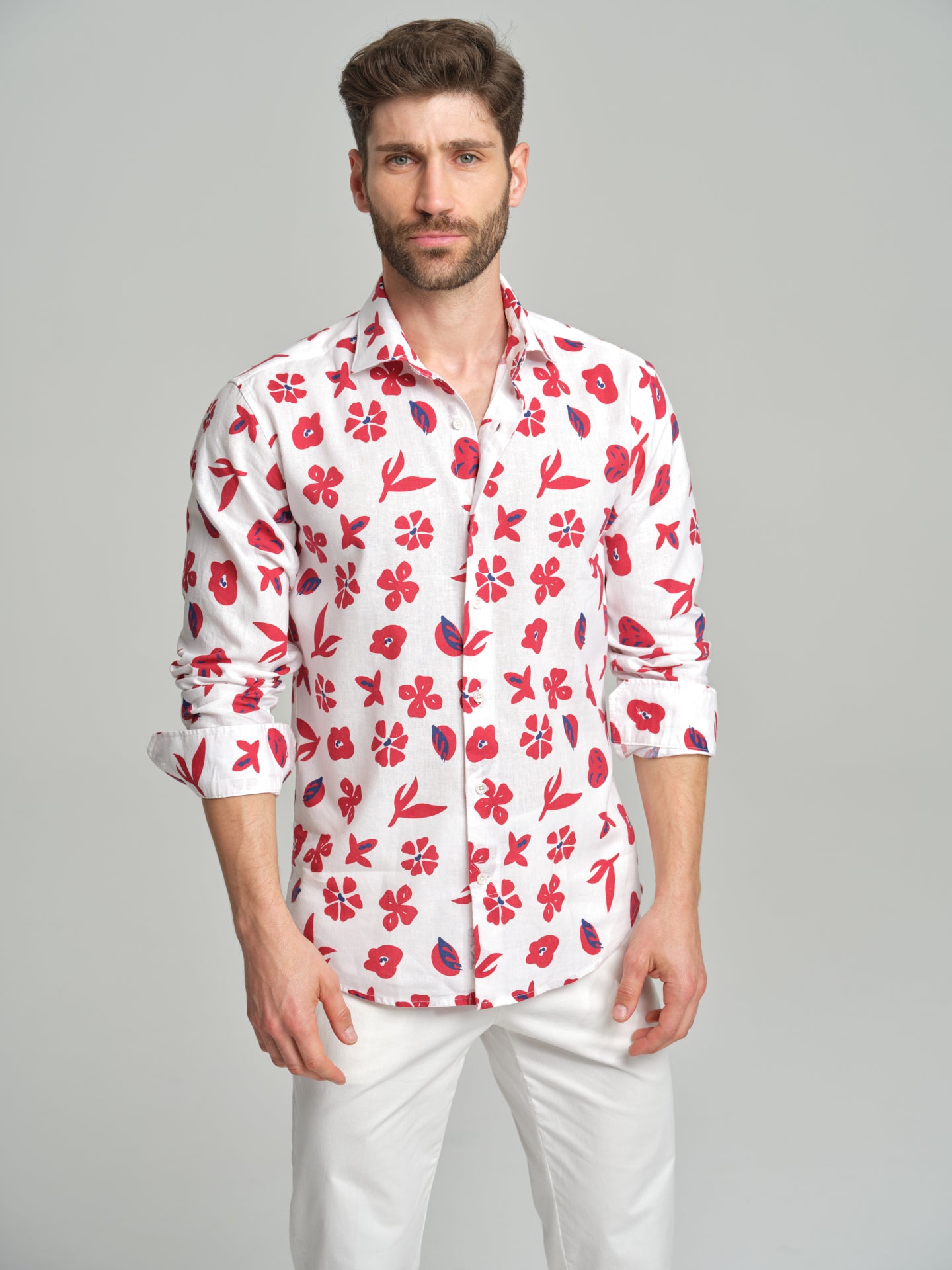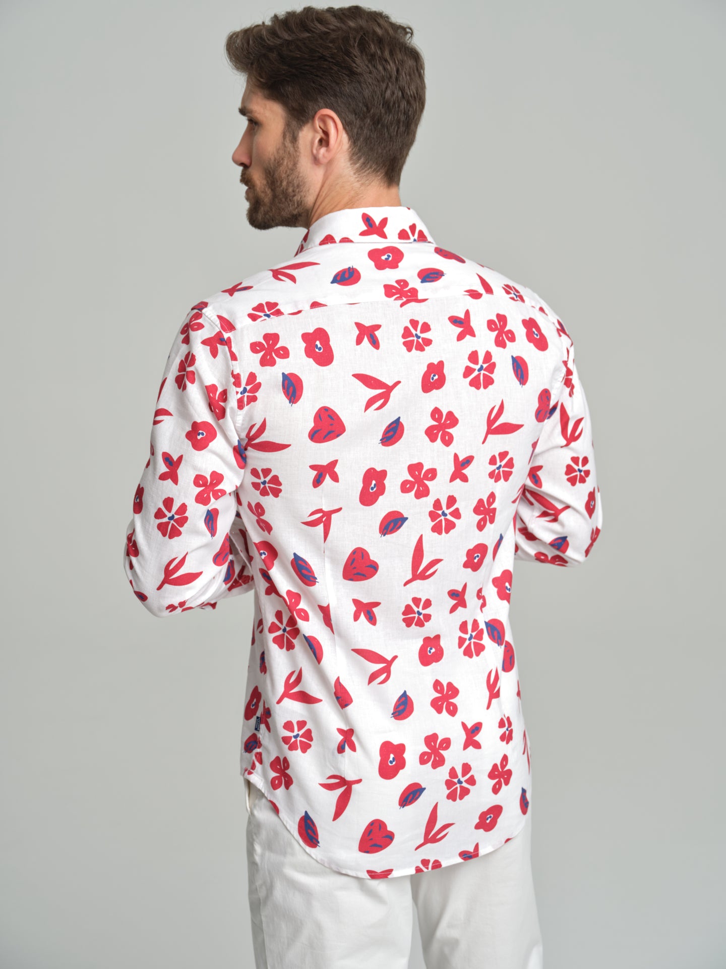 Havana Collection printed cotton and linen slim fit shirt