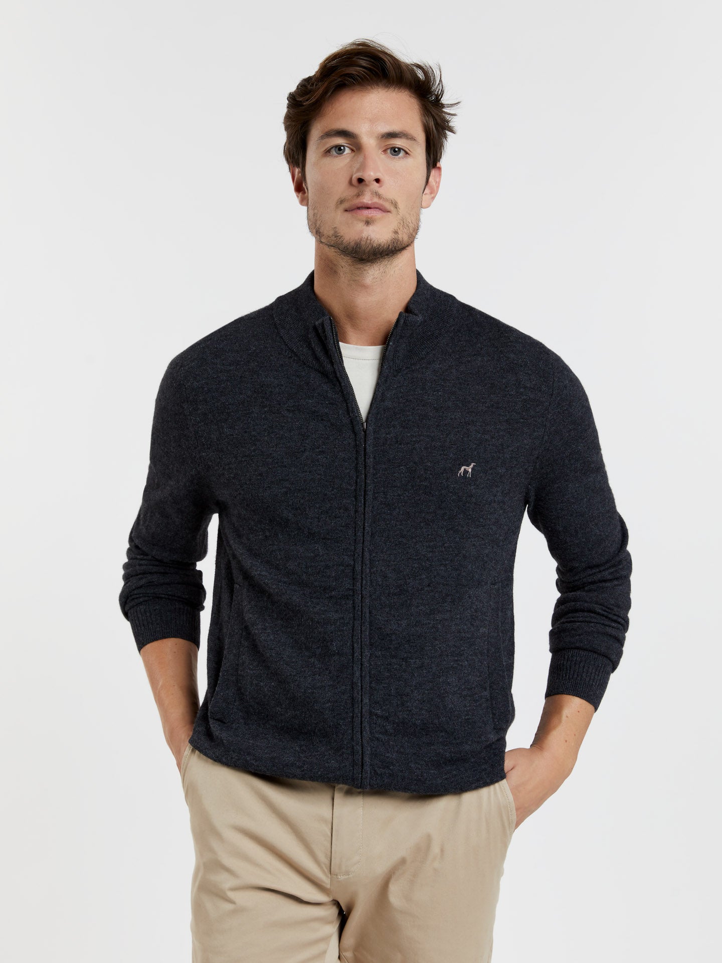 High collar zipped cardigan