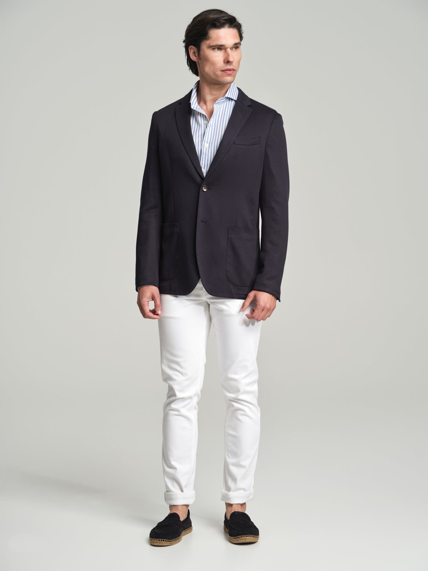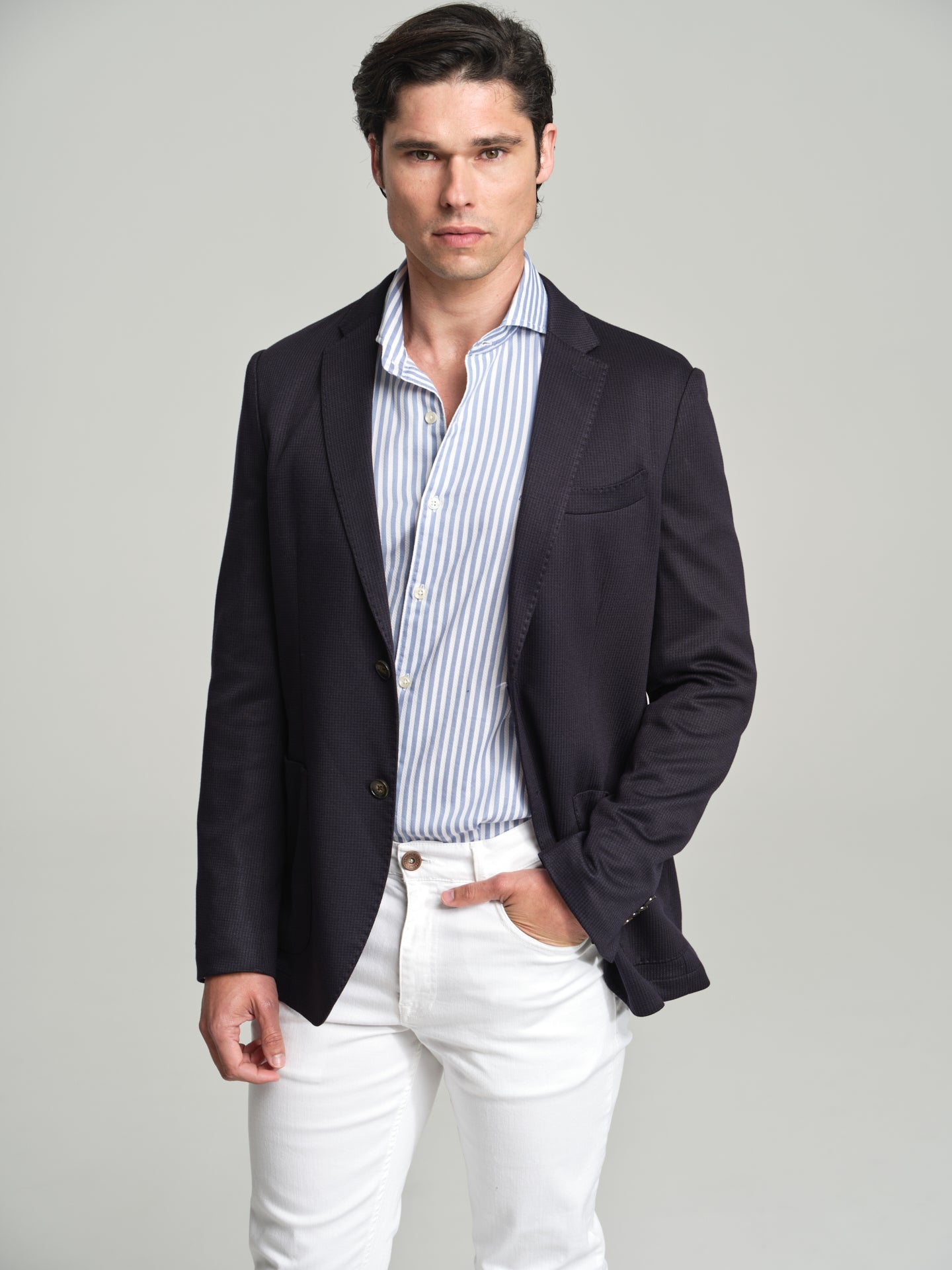 Pieces purchased at Sacoor Brothers benefit from a free in-store tailoring service. Just bring the item in, and our tailors will adjust the clothes to your body, ensuring a perfect fit. This way, you can enjoy clothing that is truly tailored to you.