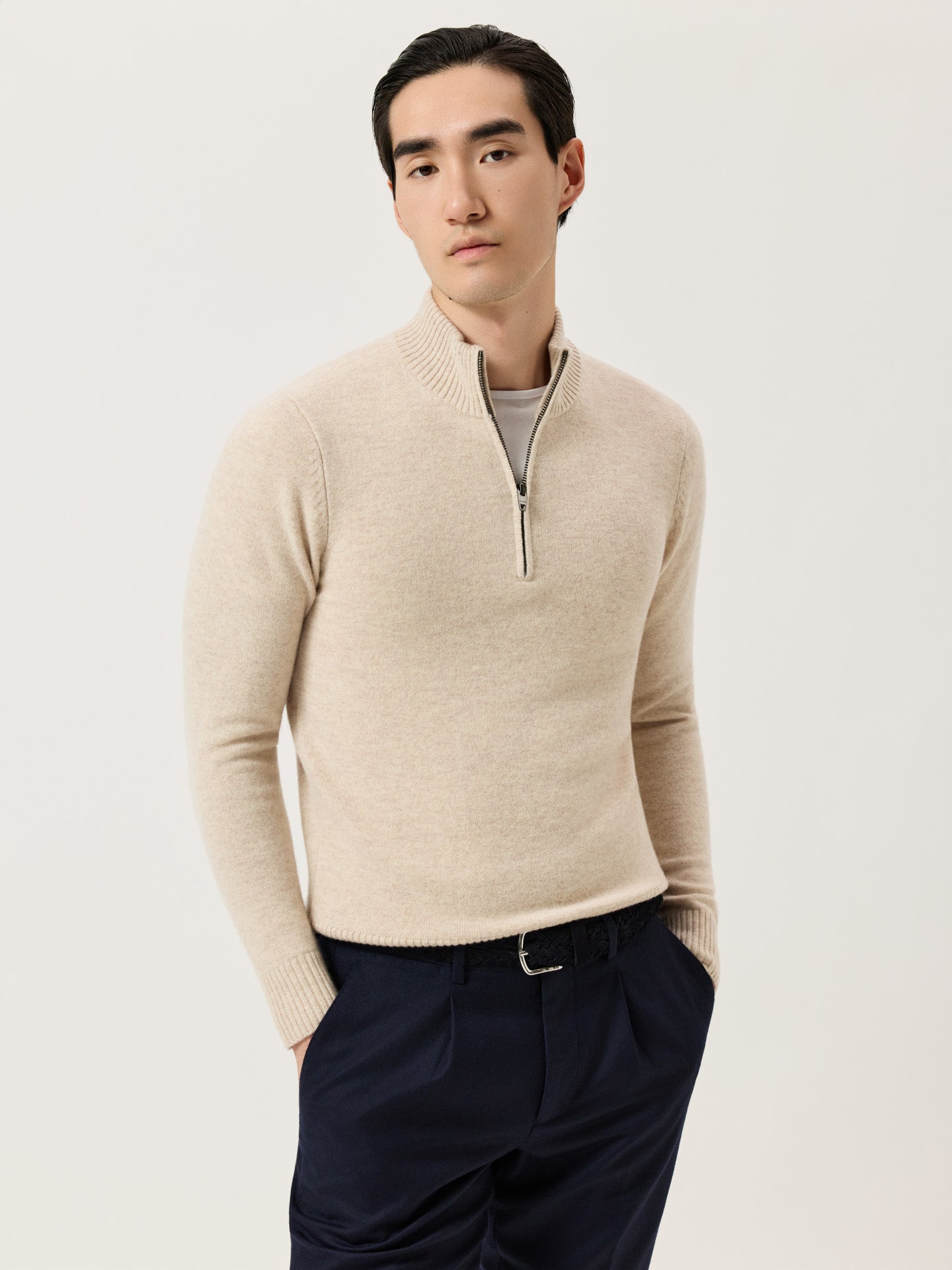 Long Sleeve Half-Zip Sweater In Pure Lambswool