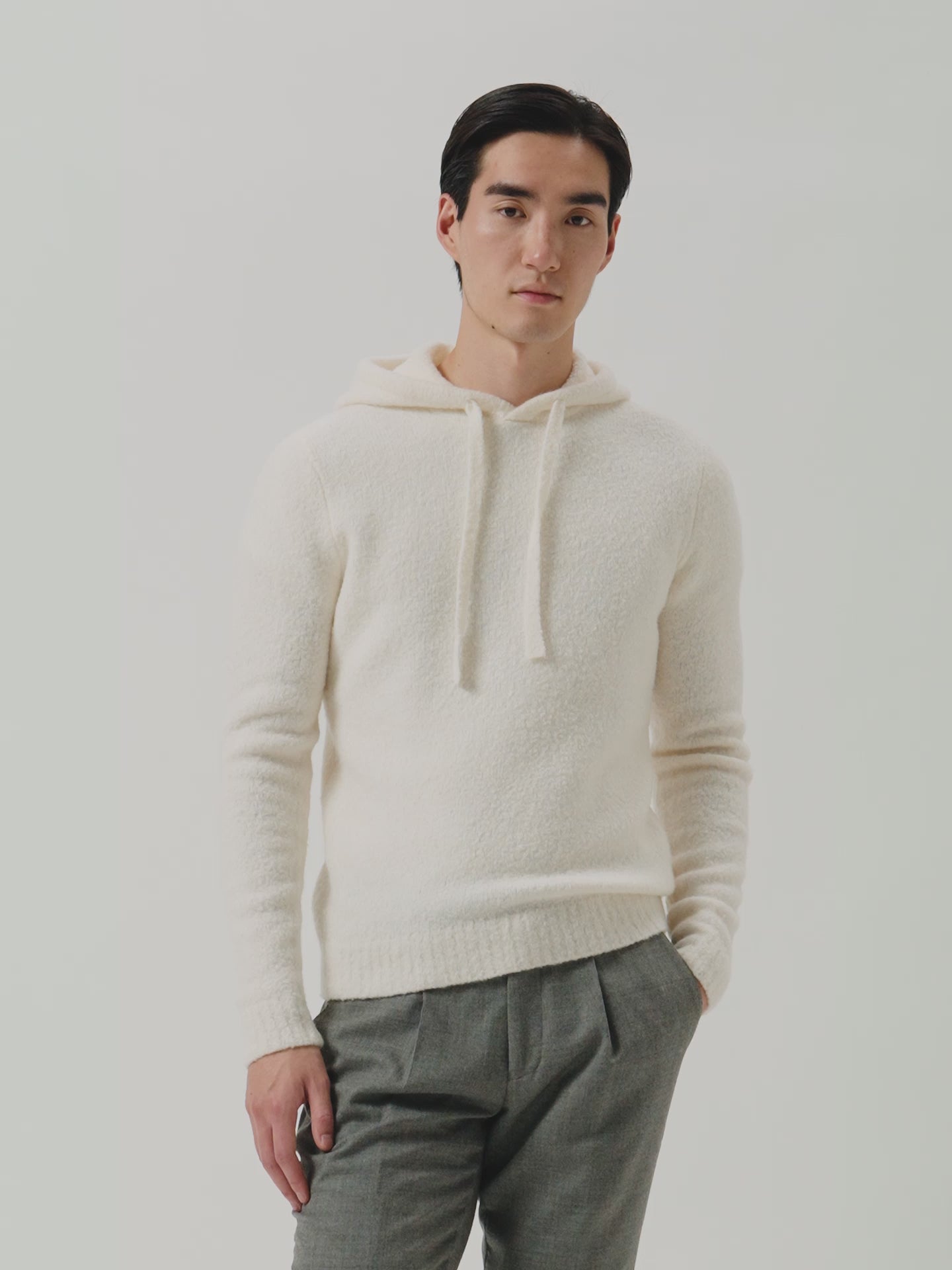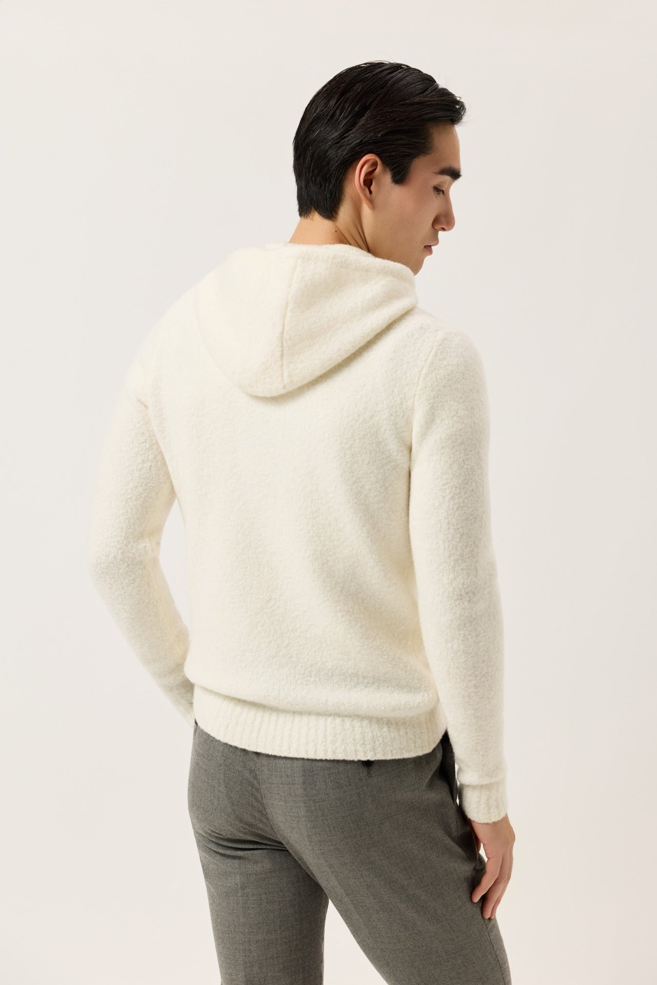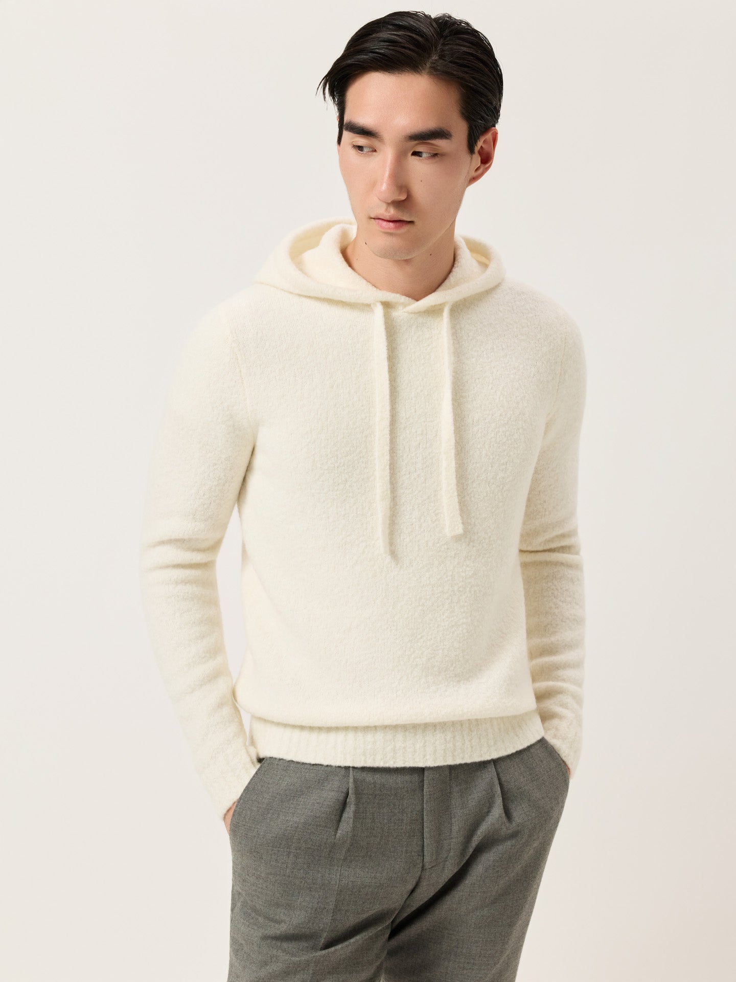 Long Sleeve Hooded Sweater In Wool And Cashmere Bouclé Knit