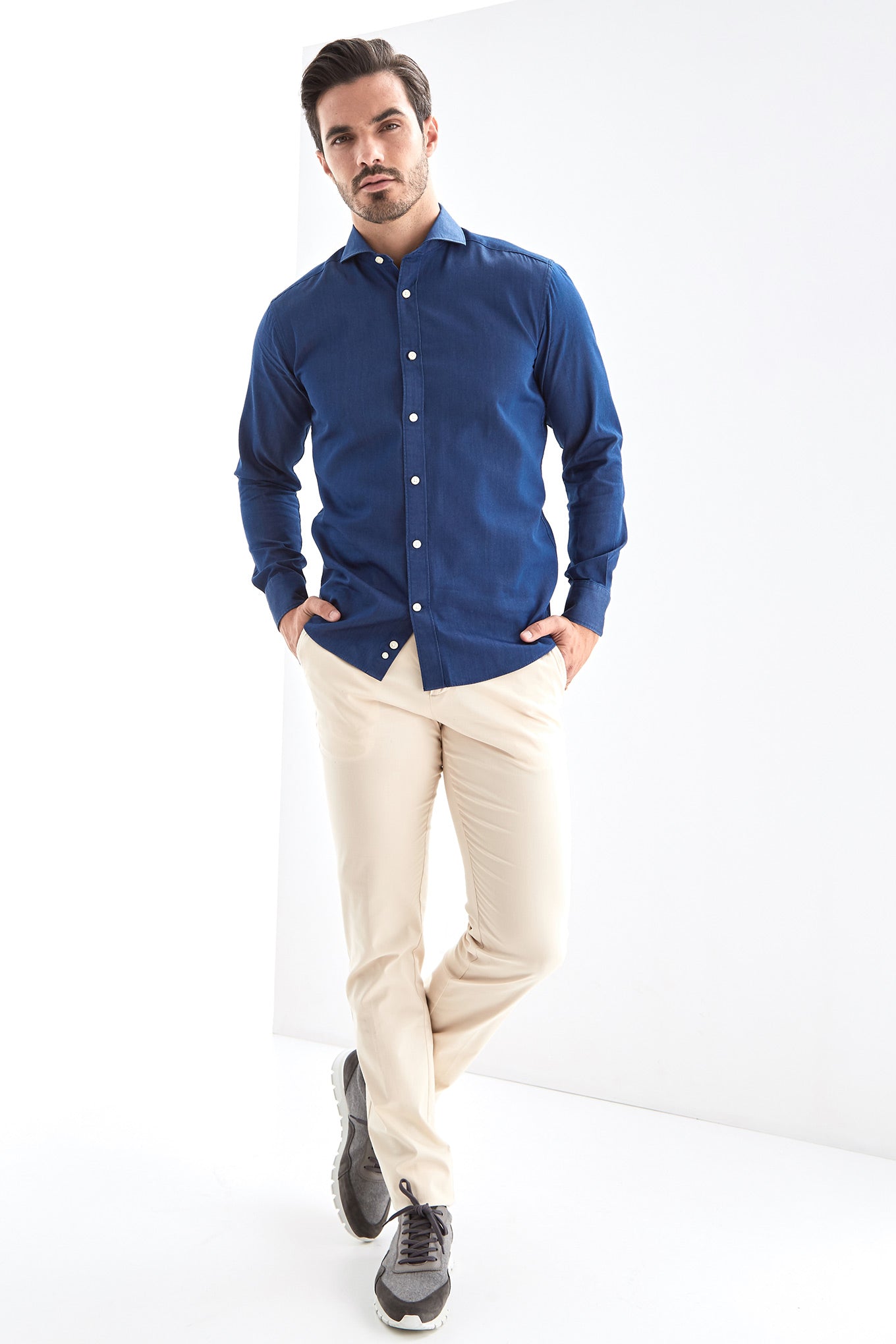 Pieces purchased at Sacoor Brothers benefit from a free in-store tailoring service. Just bring the item in, and our tailors will adjust the clothes to your body, ensuring a perfect fit. This way, you can enjoy clothing that is truly tailored to you.