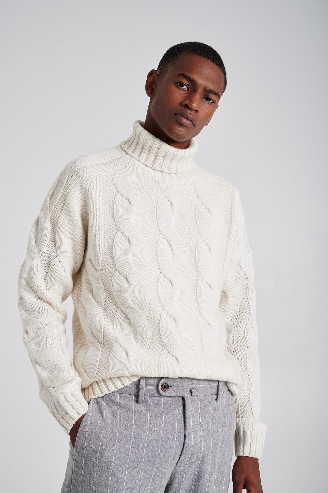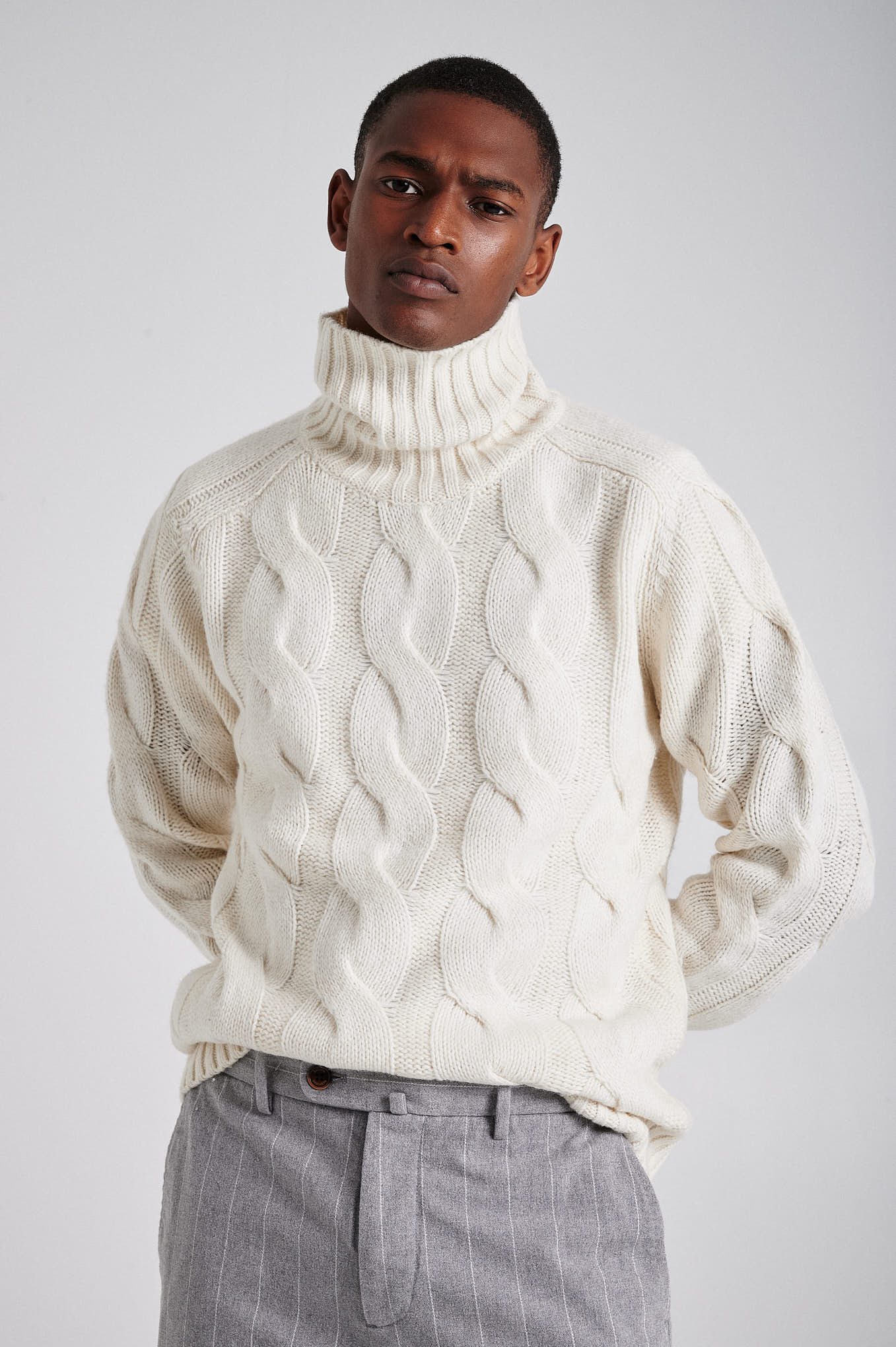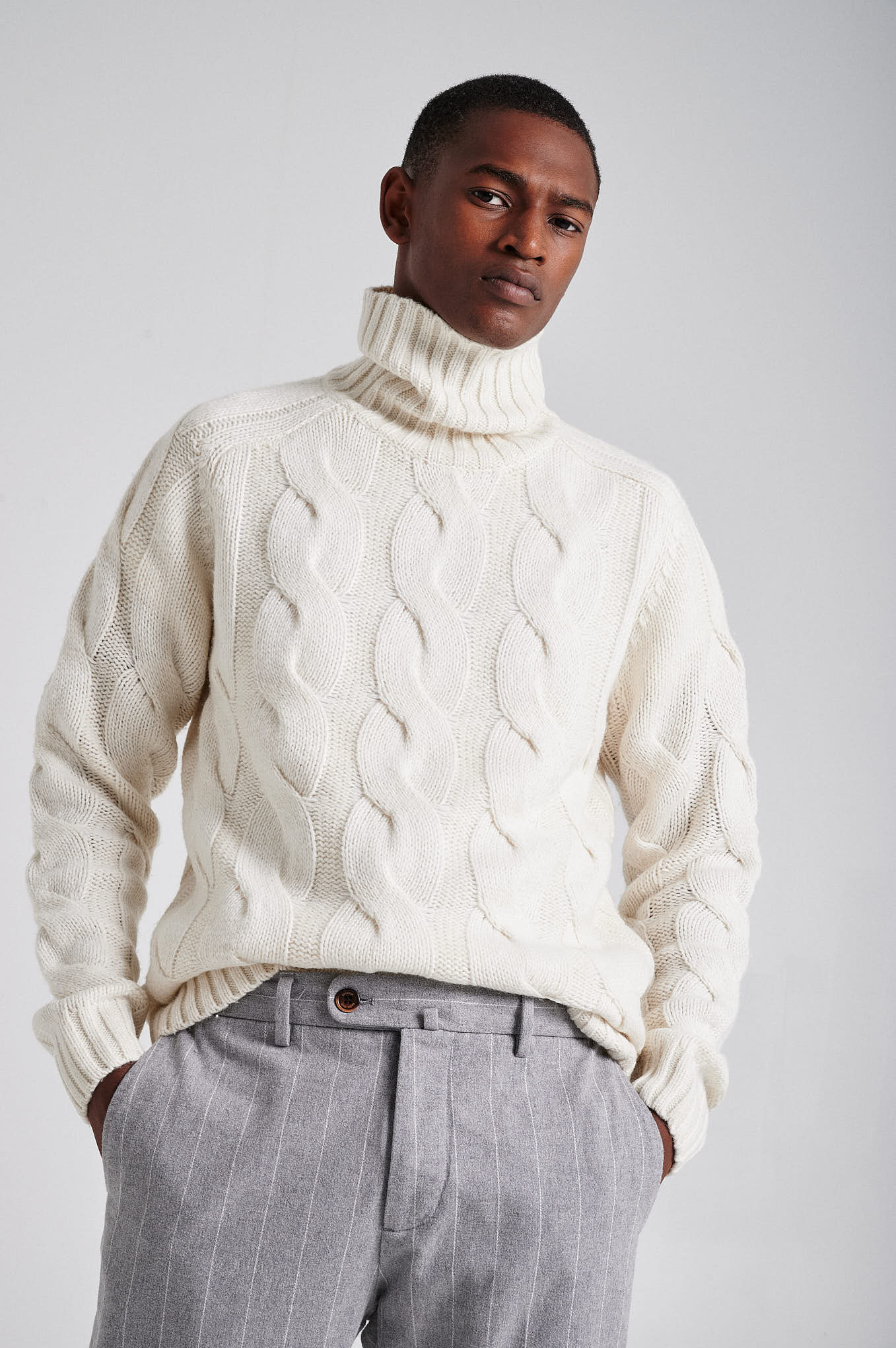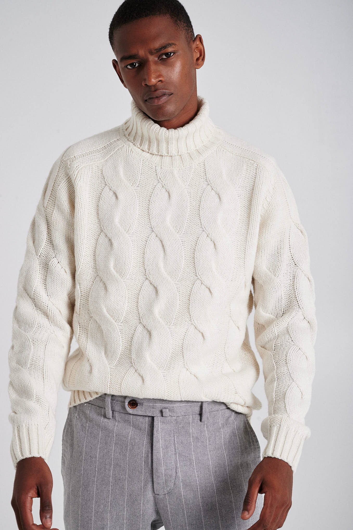 Men's chunky cable turtleneck sweater