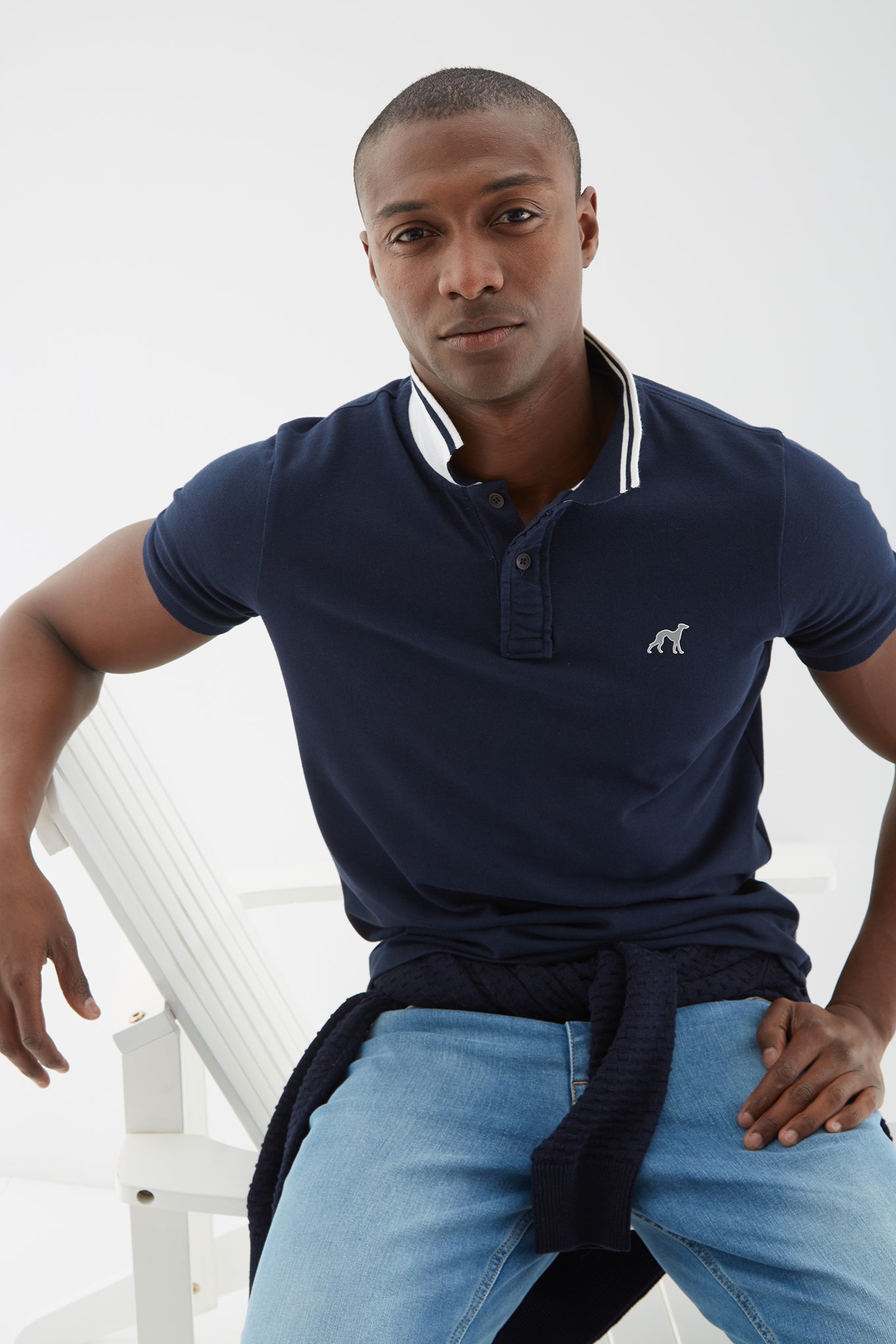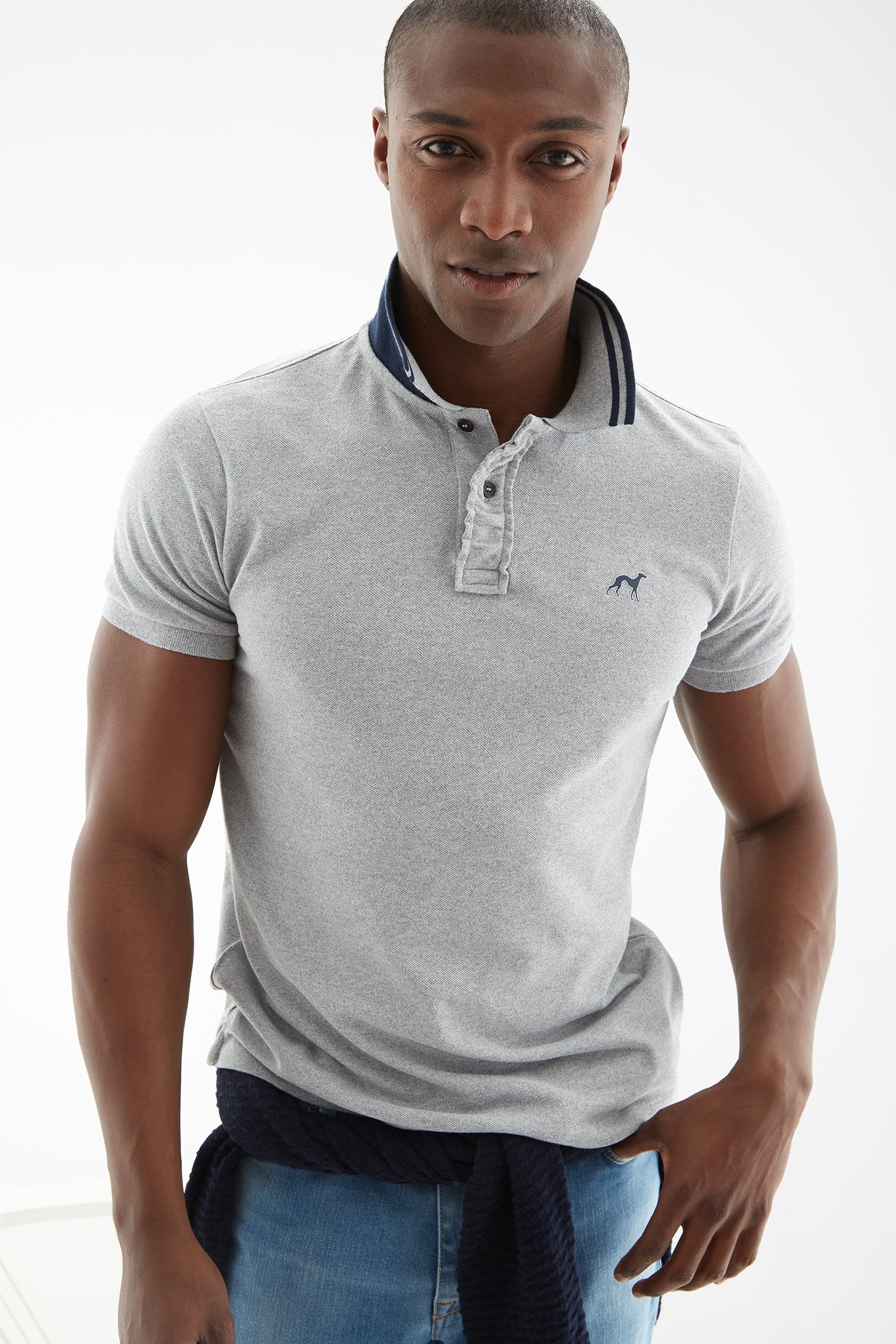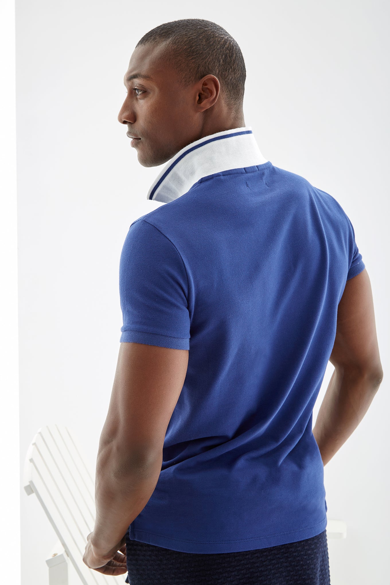 Men's Collar Stripe Slim Fit Polo Piquet Shirt