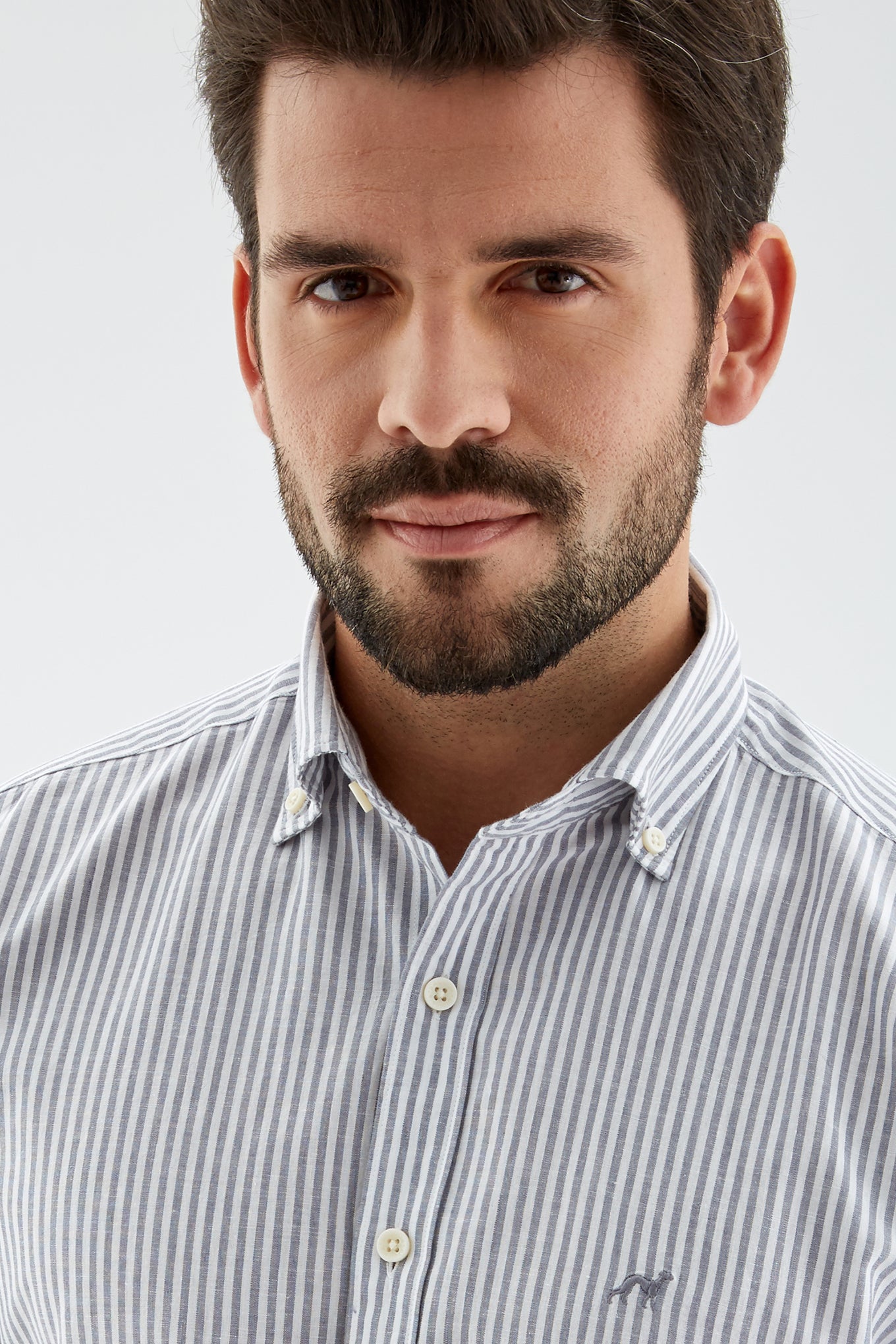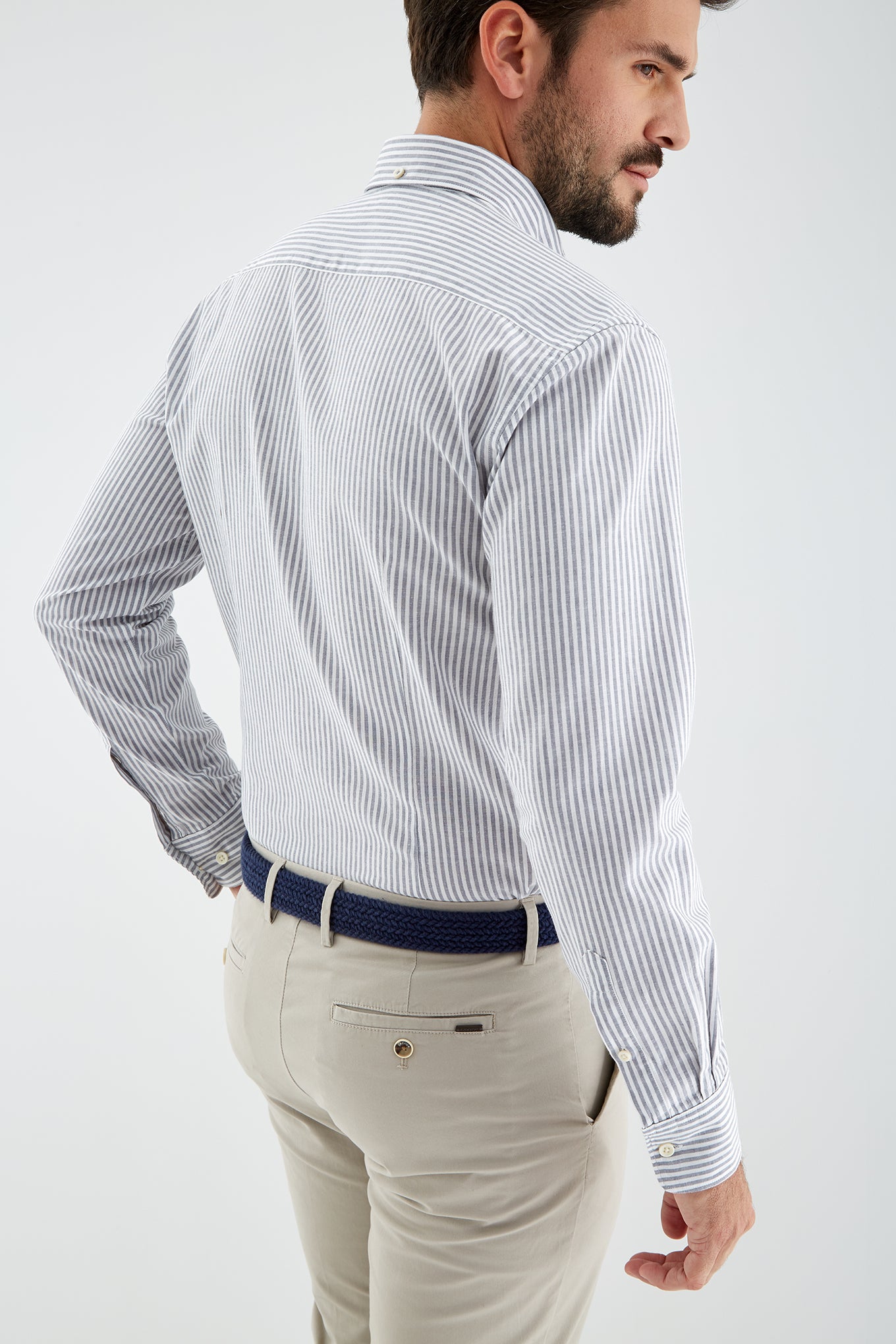 Men's Cotton and Linen Striped Sports Shirt