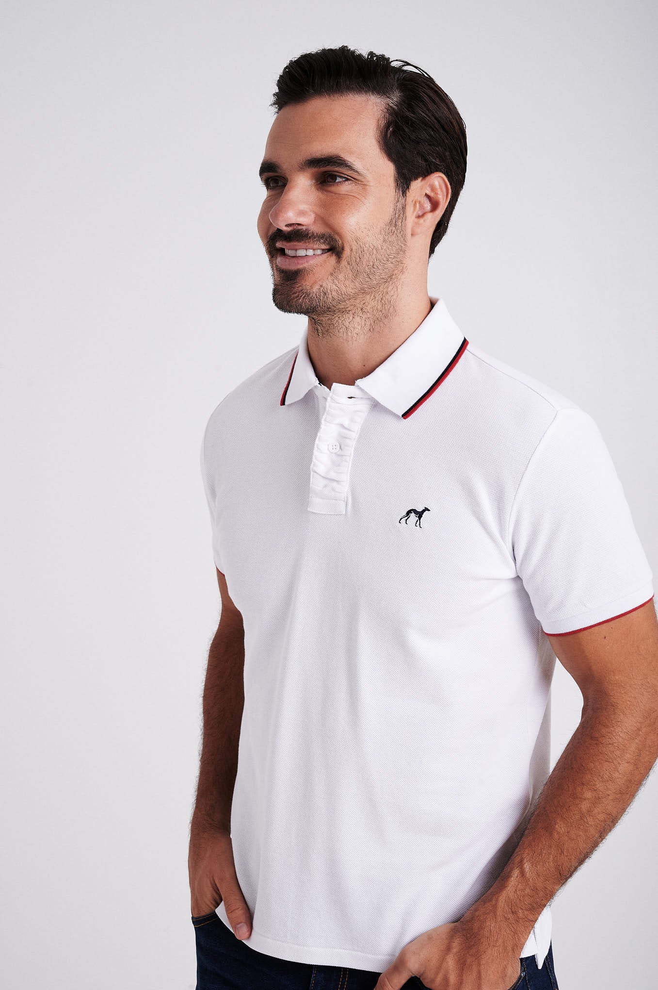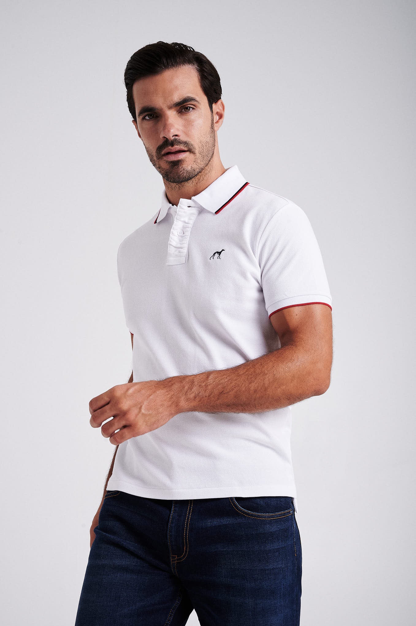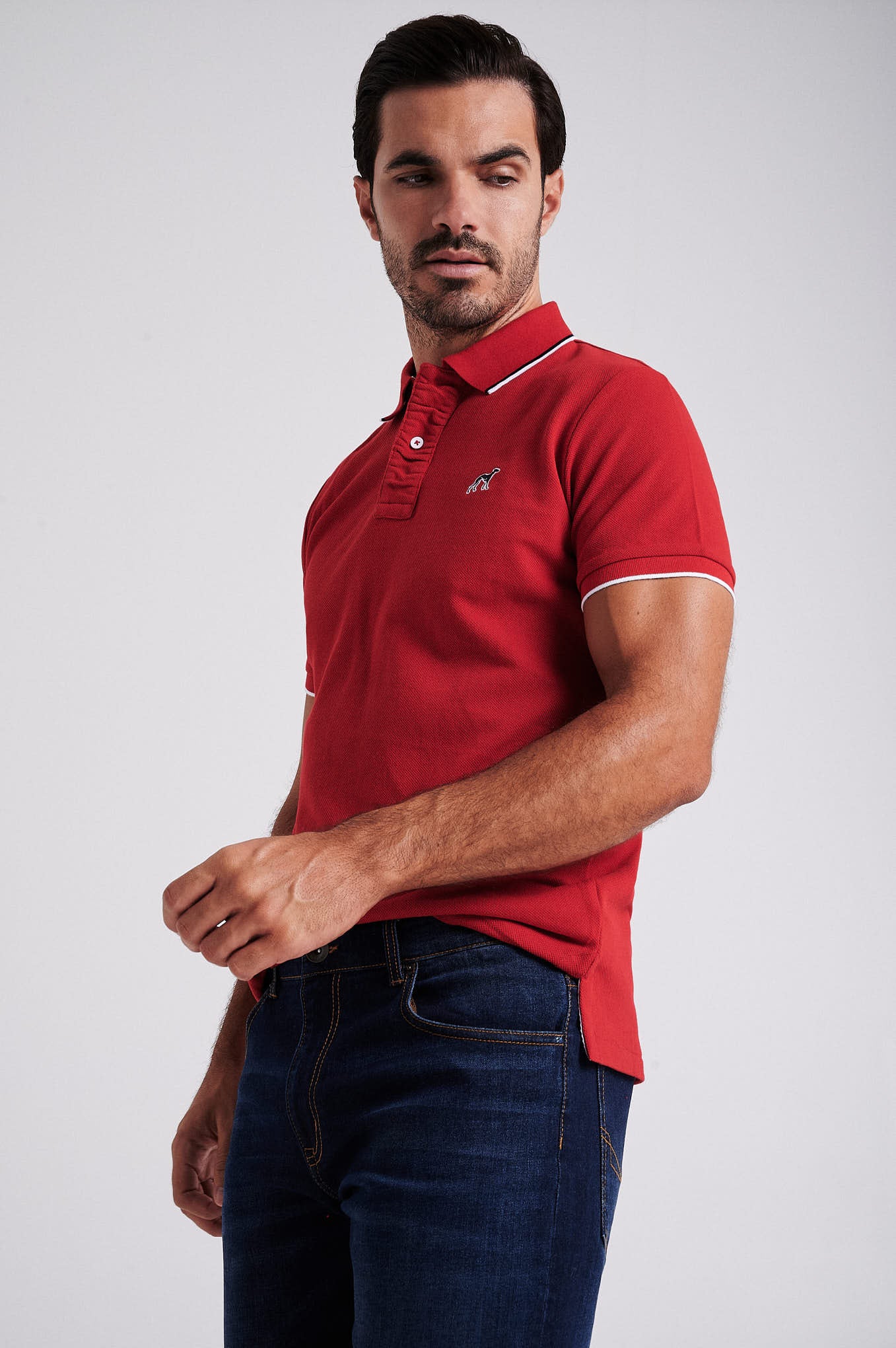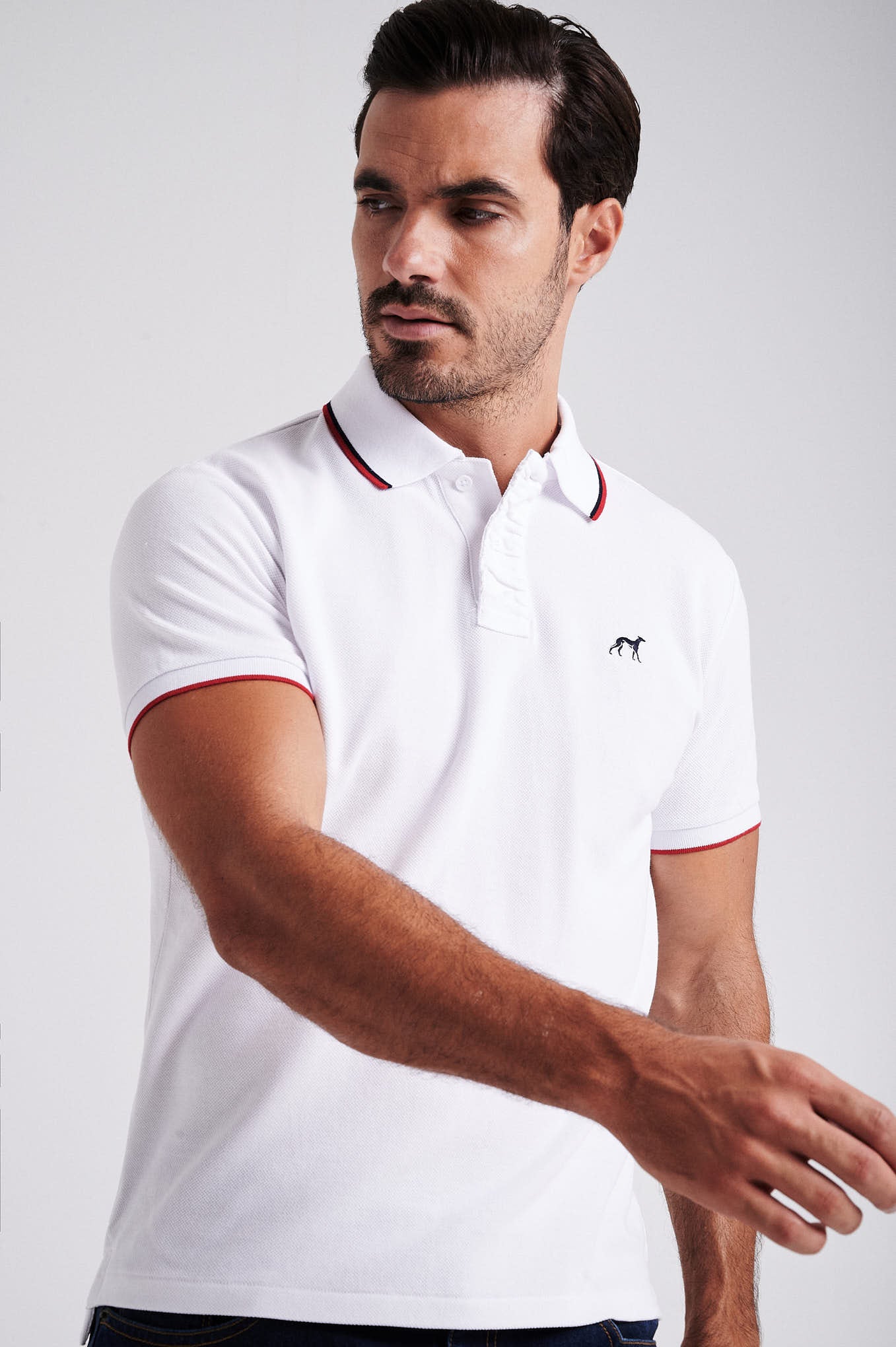 Men's cotton piquet polo with wrinkle placket