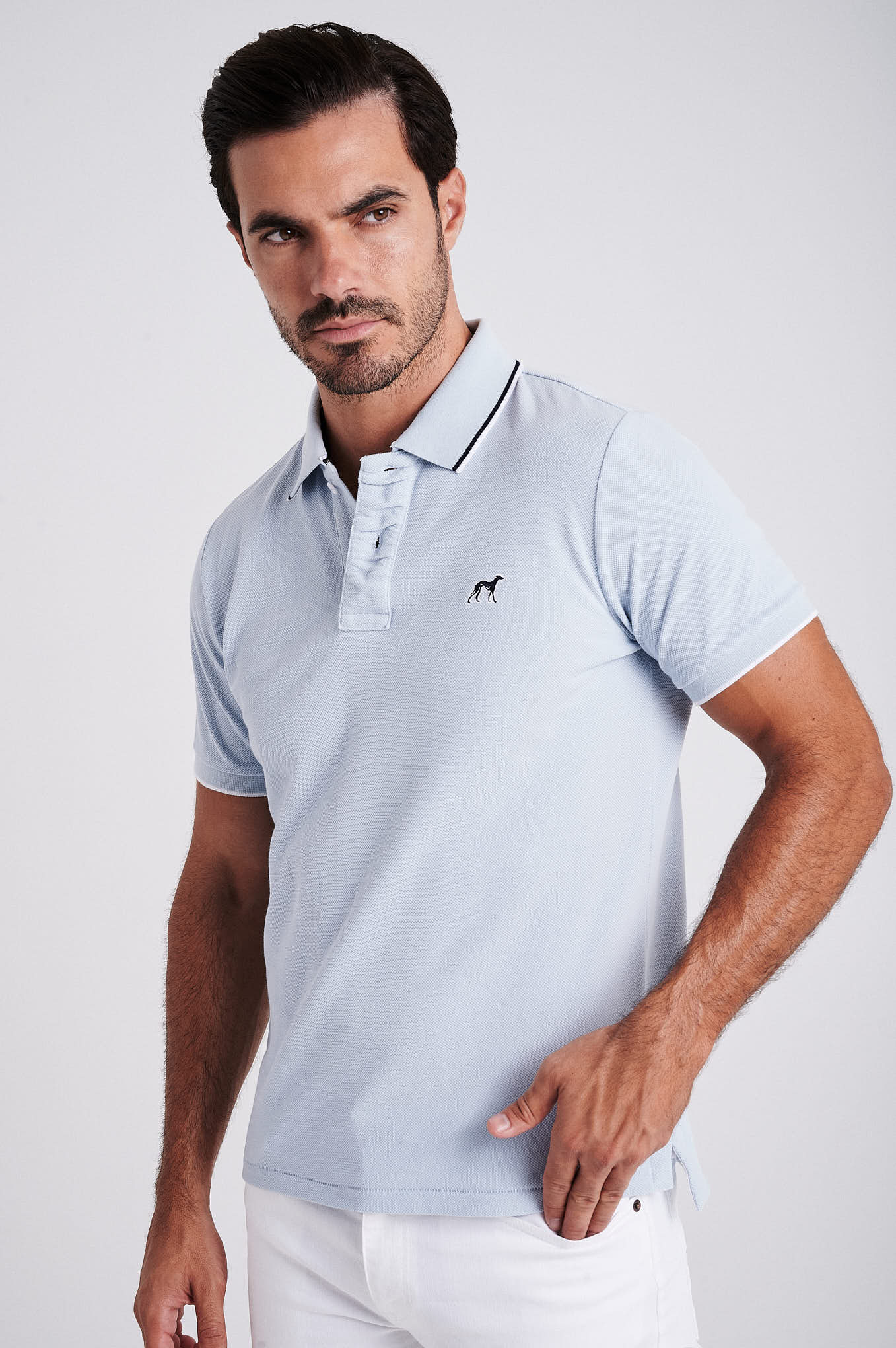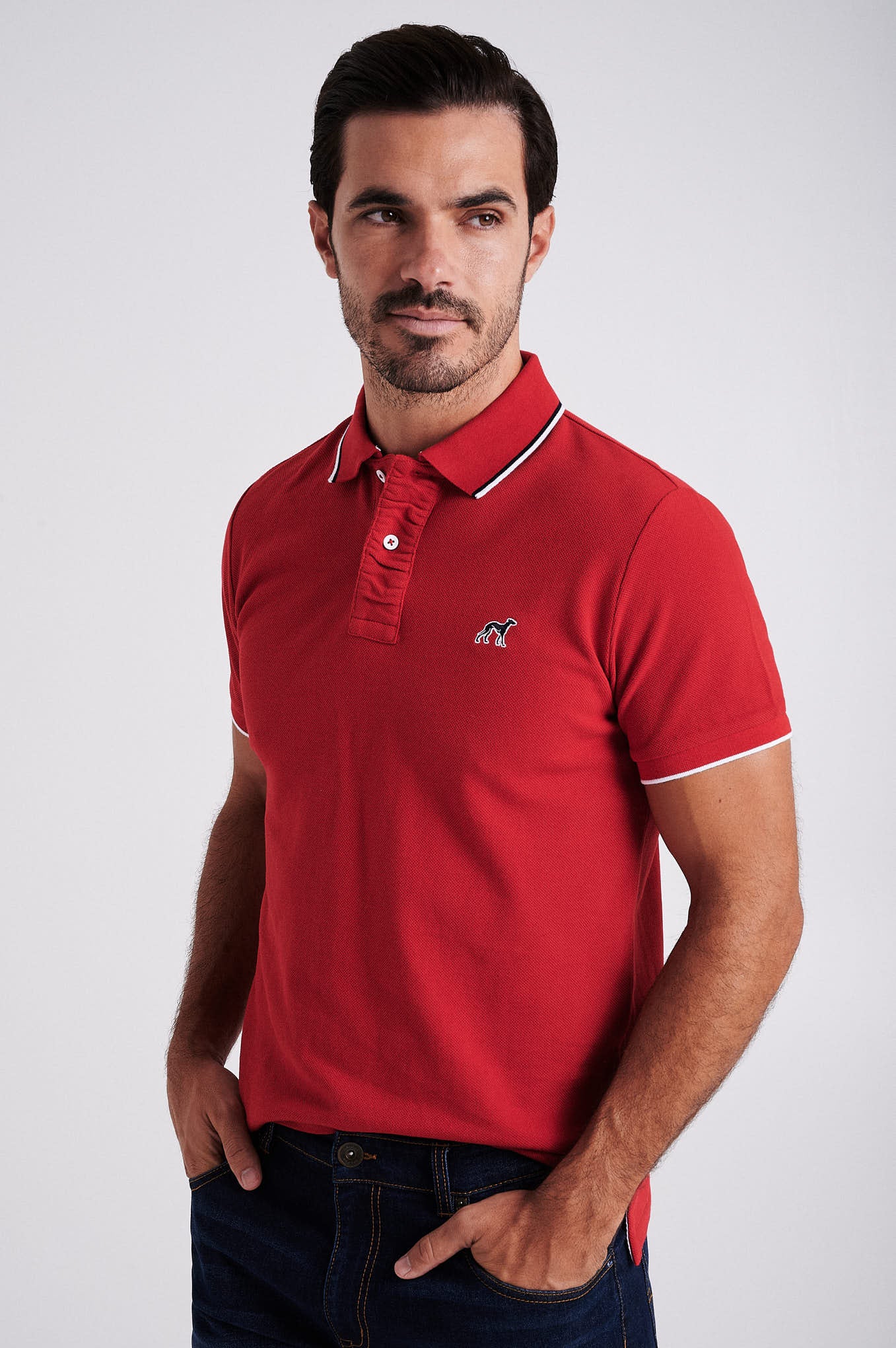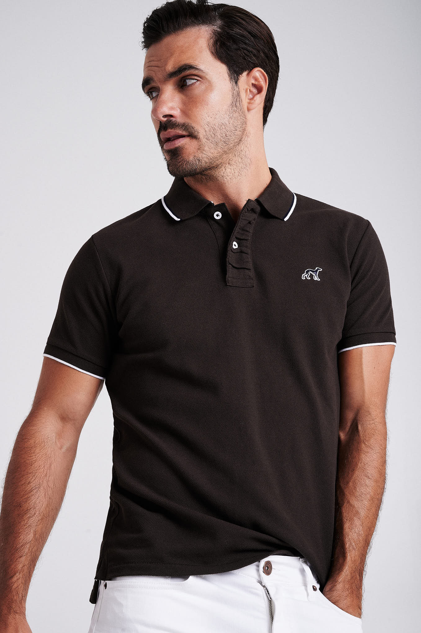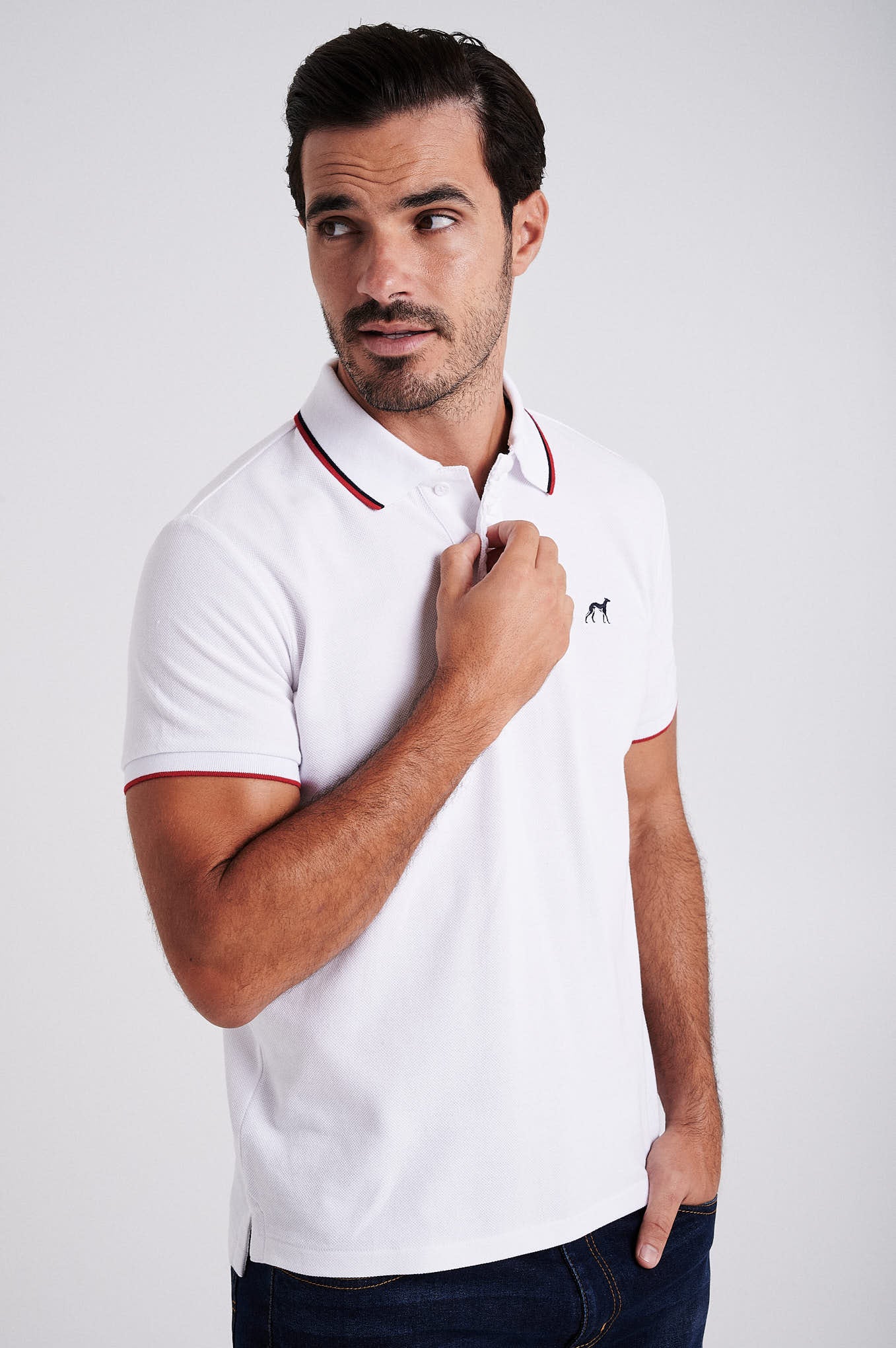 Men's cotton piquet polo with wrinkle placket