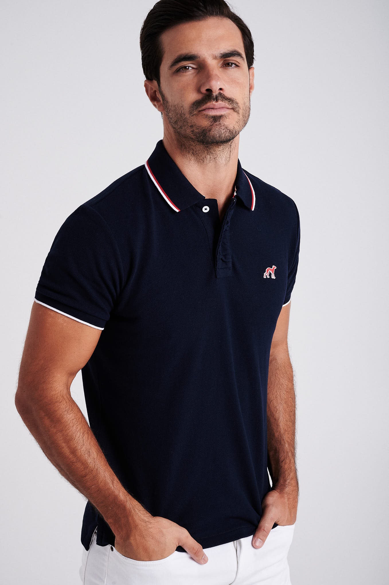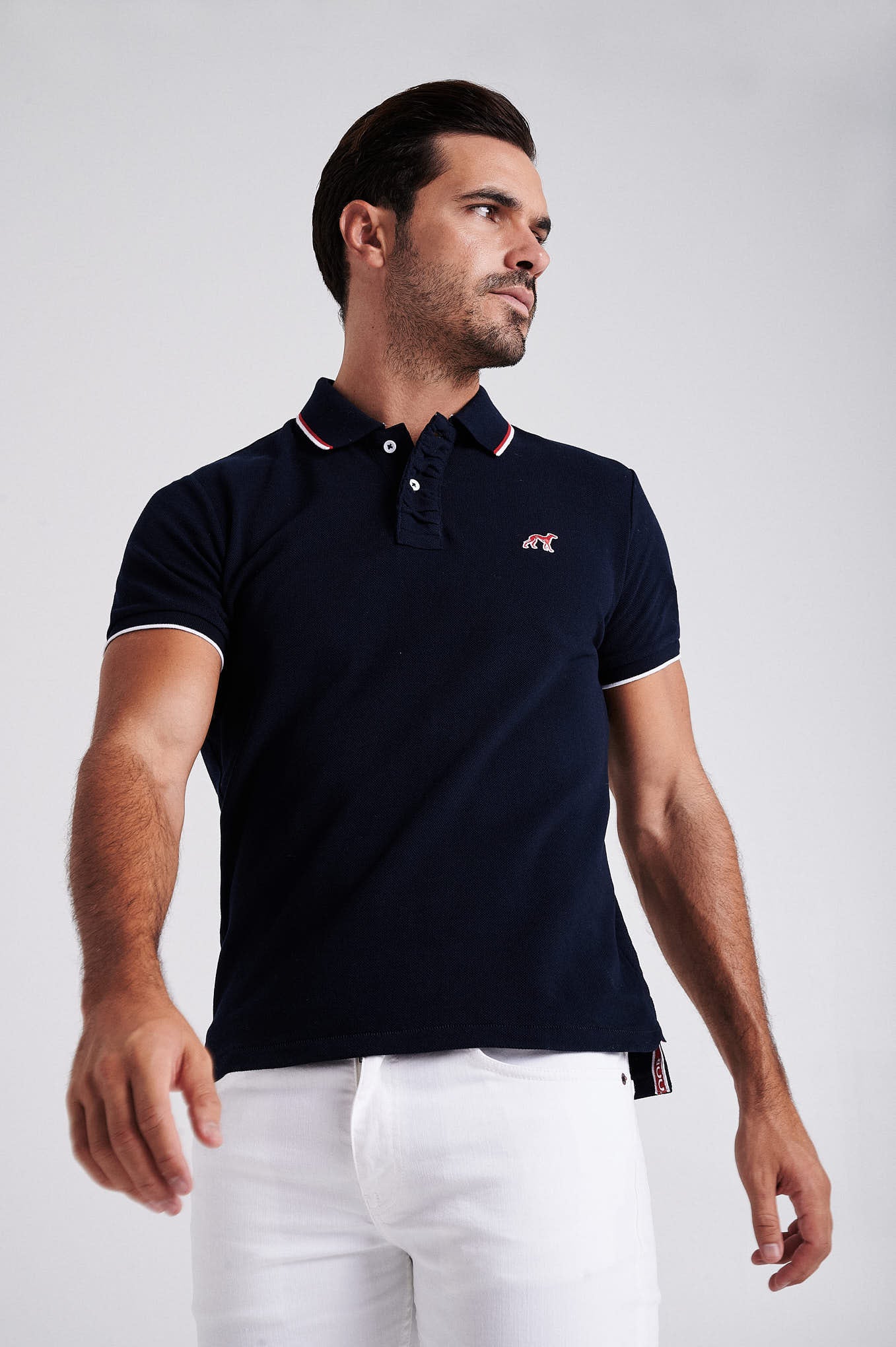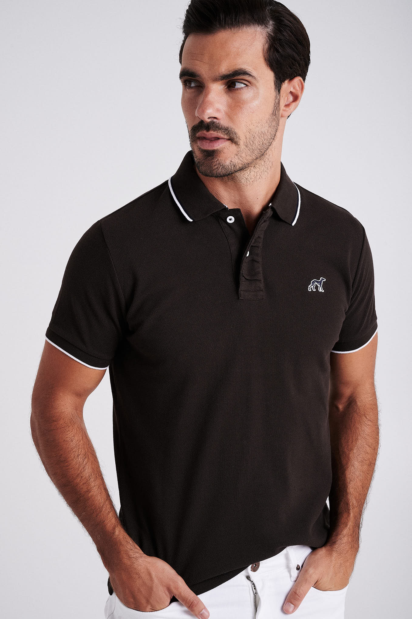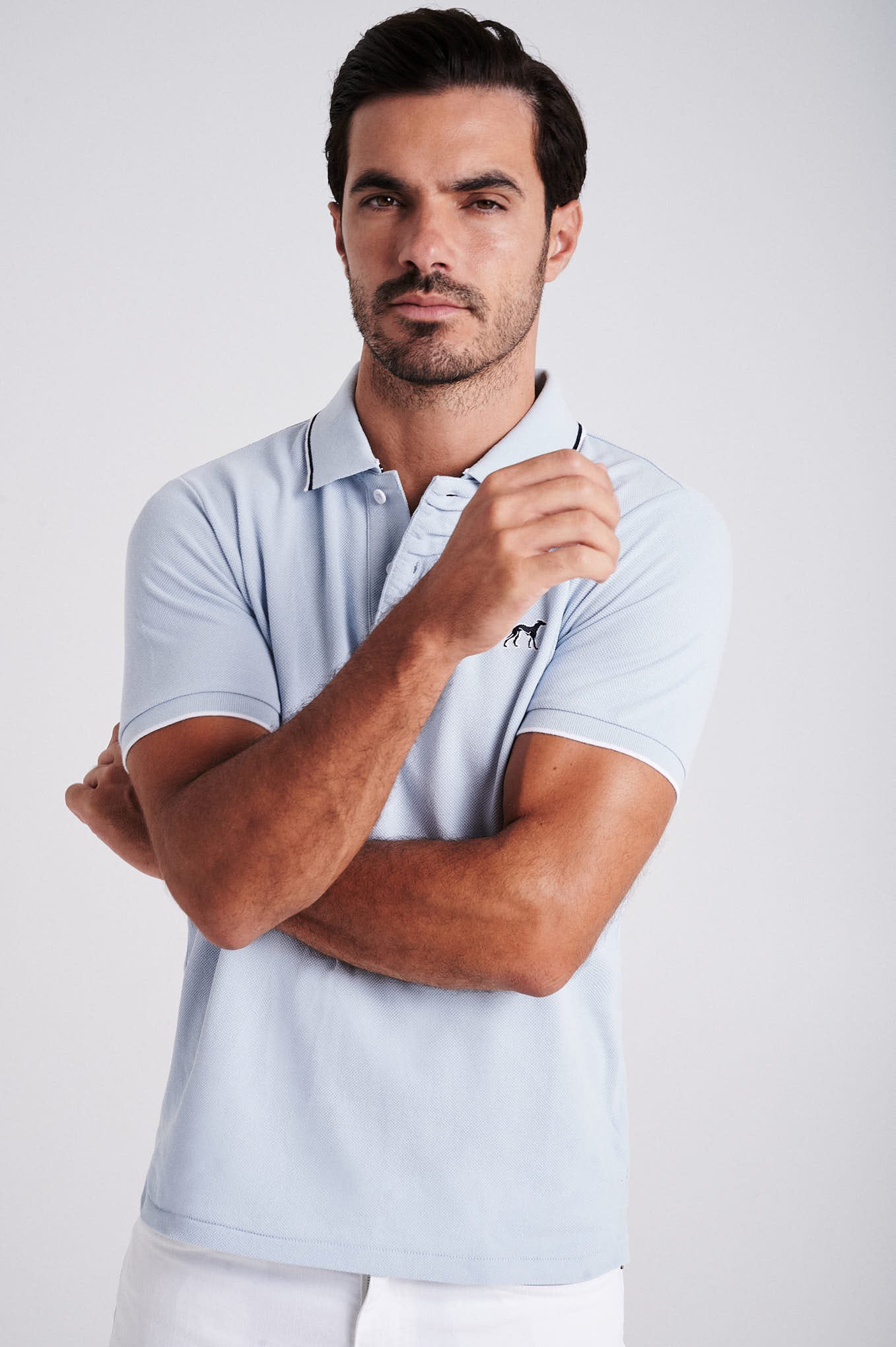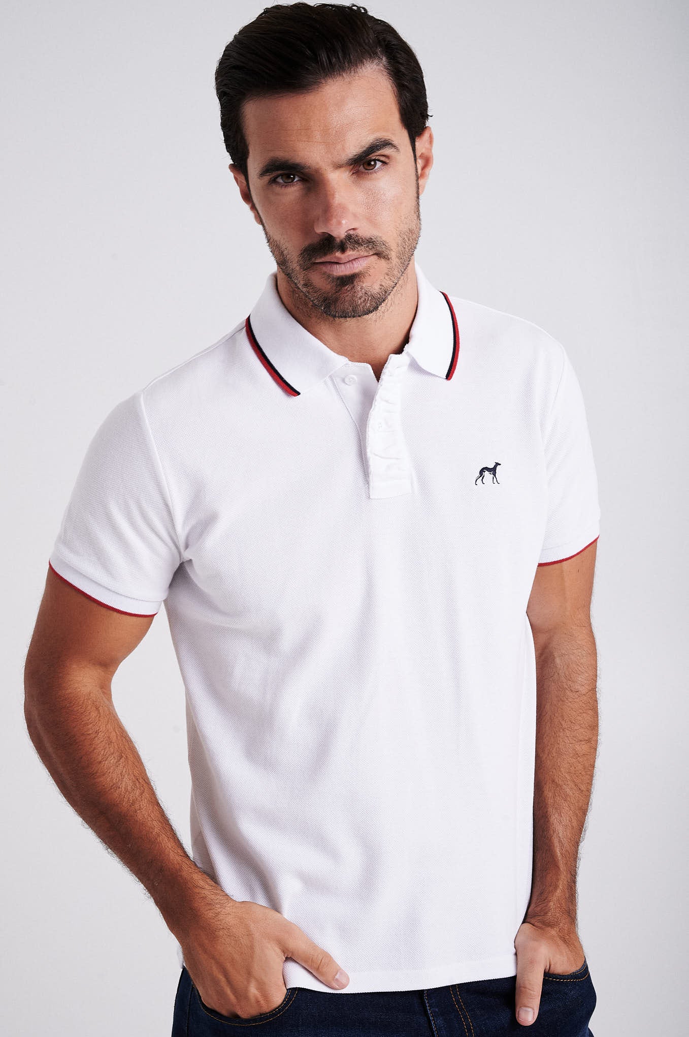 Men's cotton piquet polo with wrinkle placket
