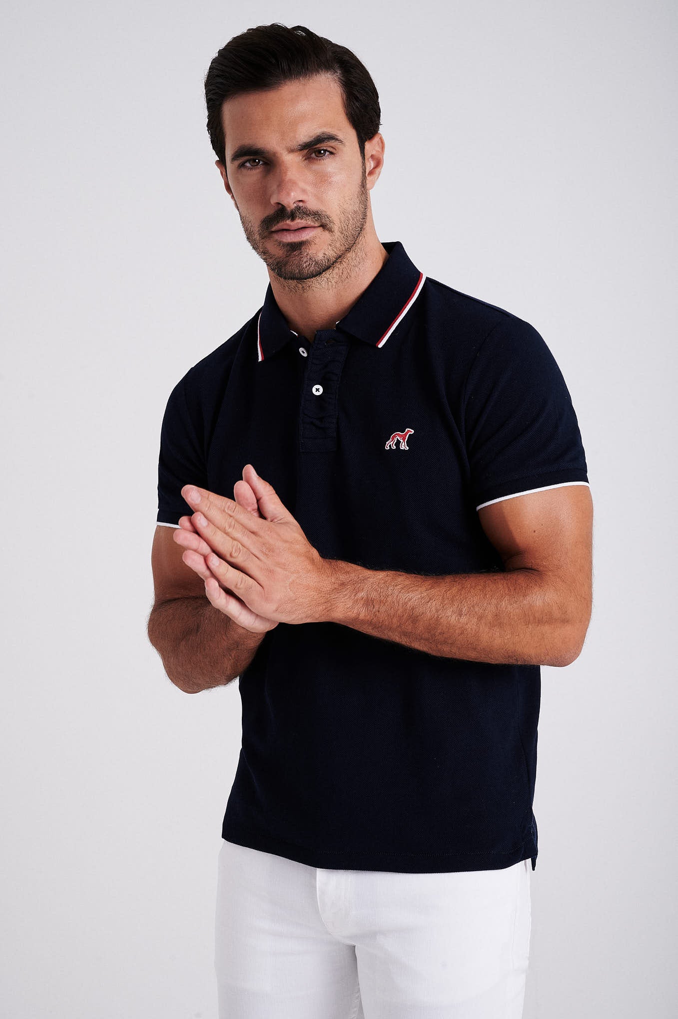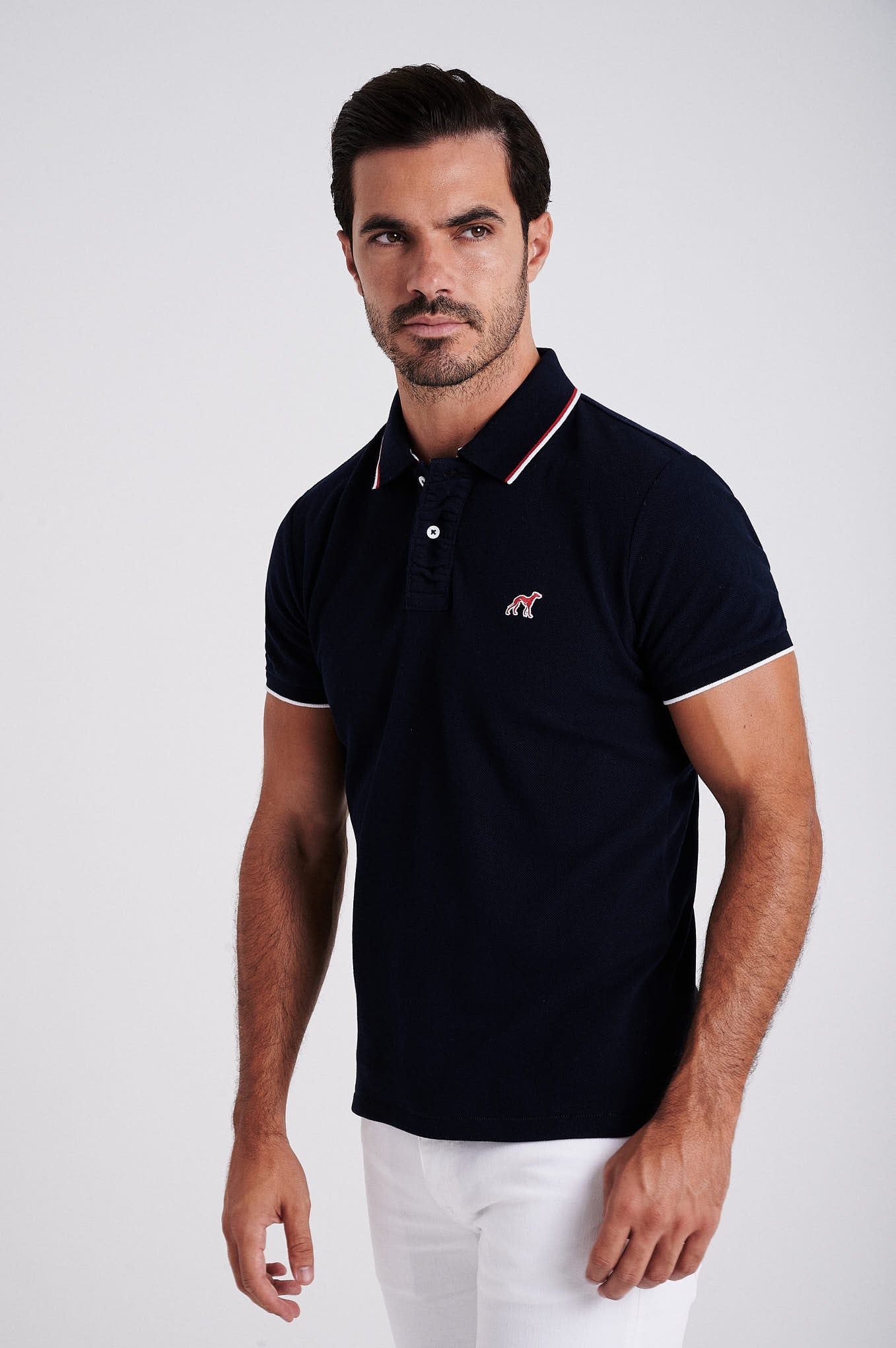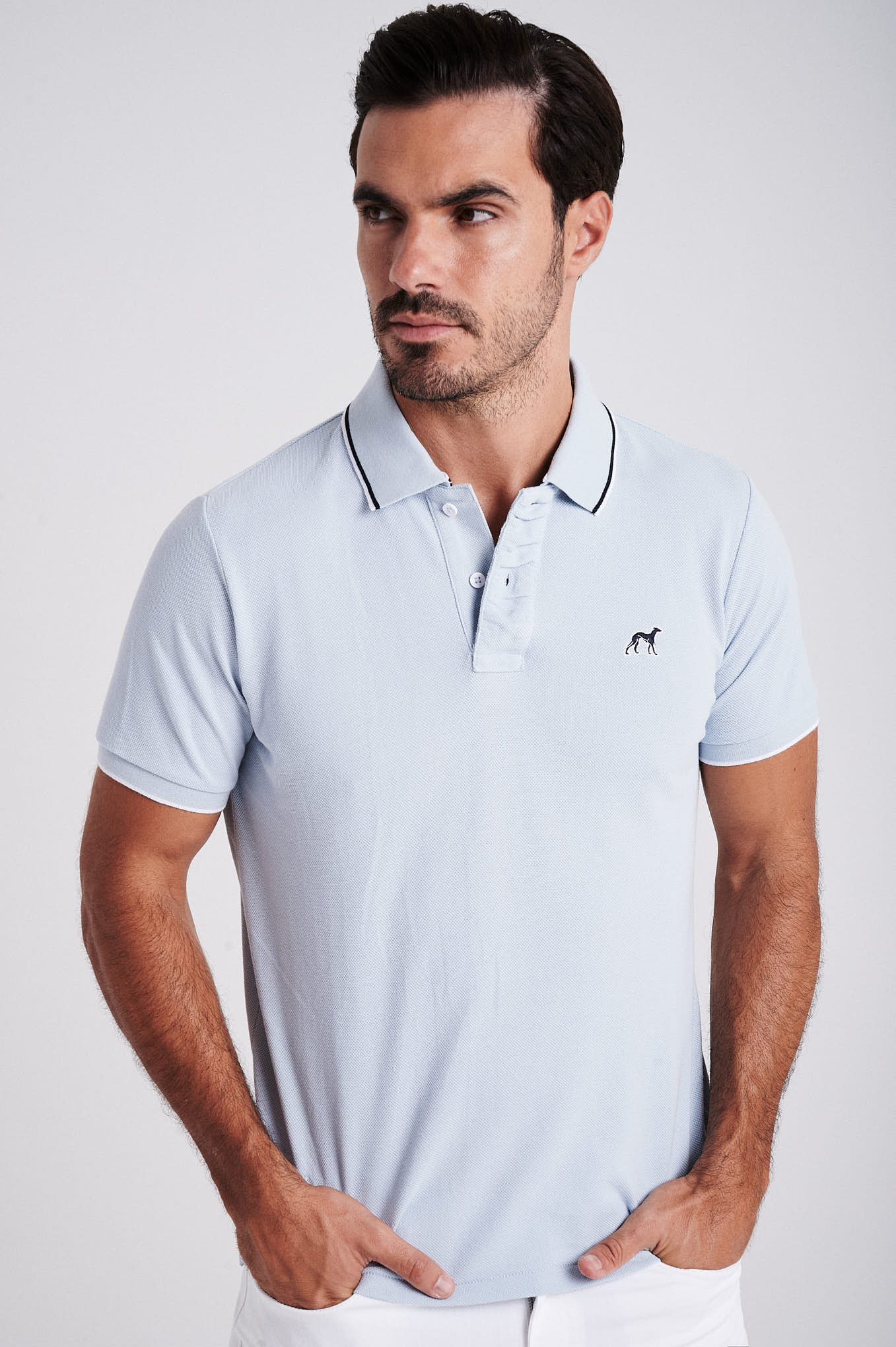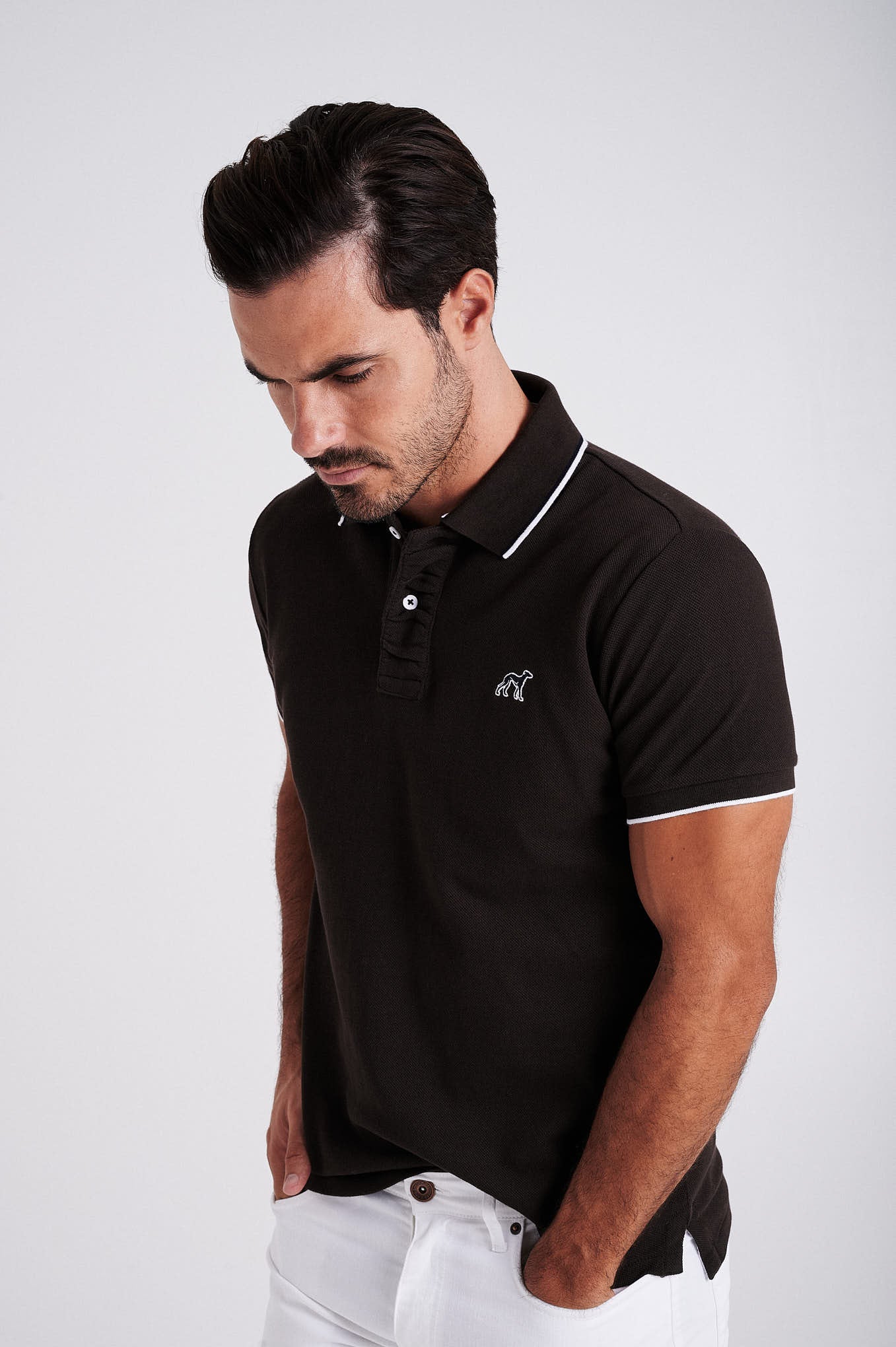 Men's cotton piquet polo with wrinkle placket