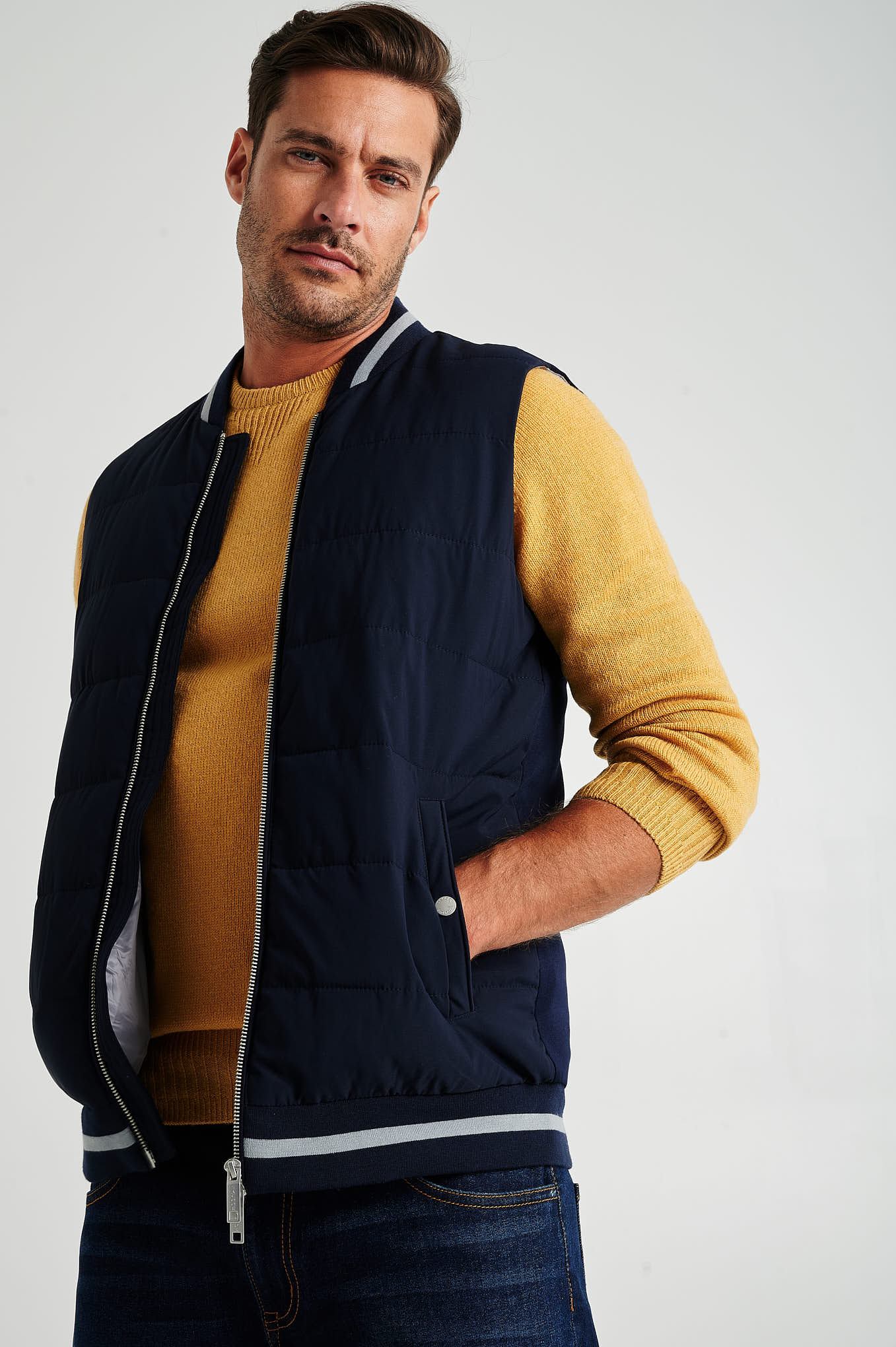 Men's hybrid zip-through vest
