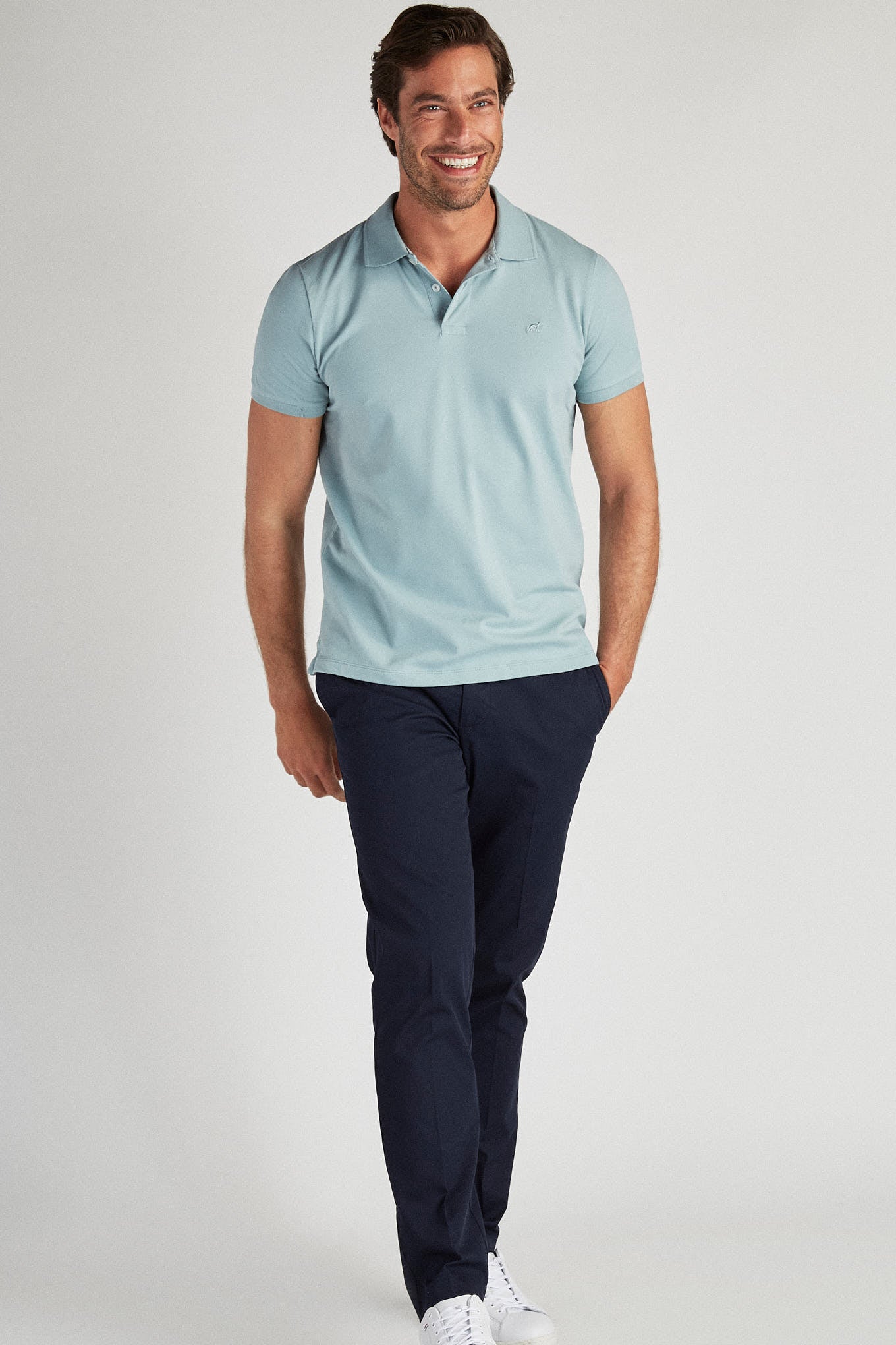 Men's short-sleeved polo piquet shirt with Sacoor badge embroidered on the front. Regular collar, with 2 buttons. Ribbed trims. Regular fit, wider silhouette. Elastane increases comfort and flexibility.