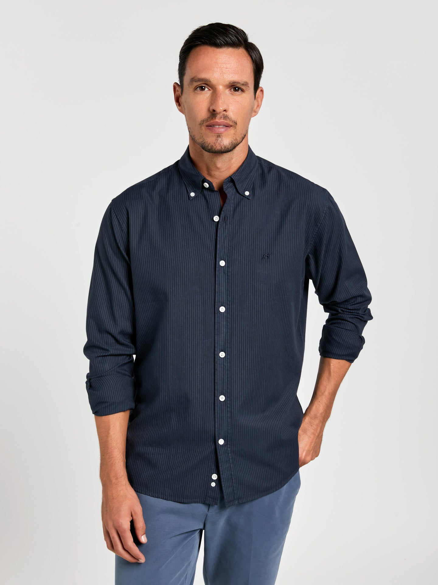Regular fit 100% bci cotton garment dye striped oxford shirt