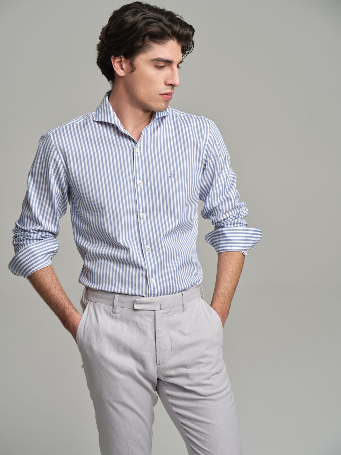 Slim fit casual striped piquet structure shirt
