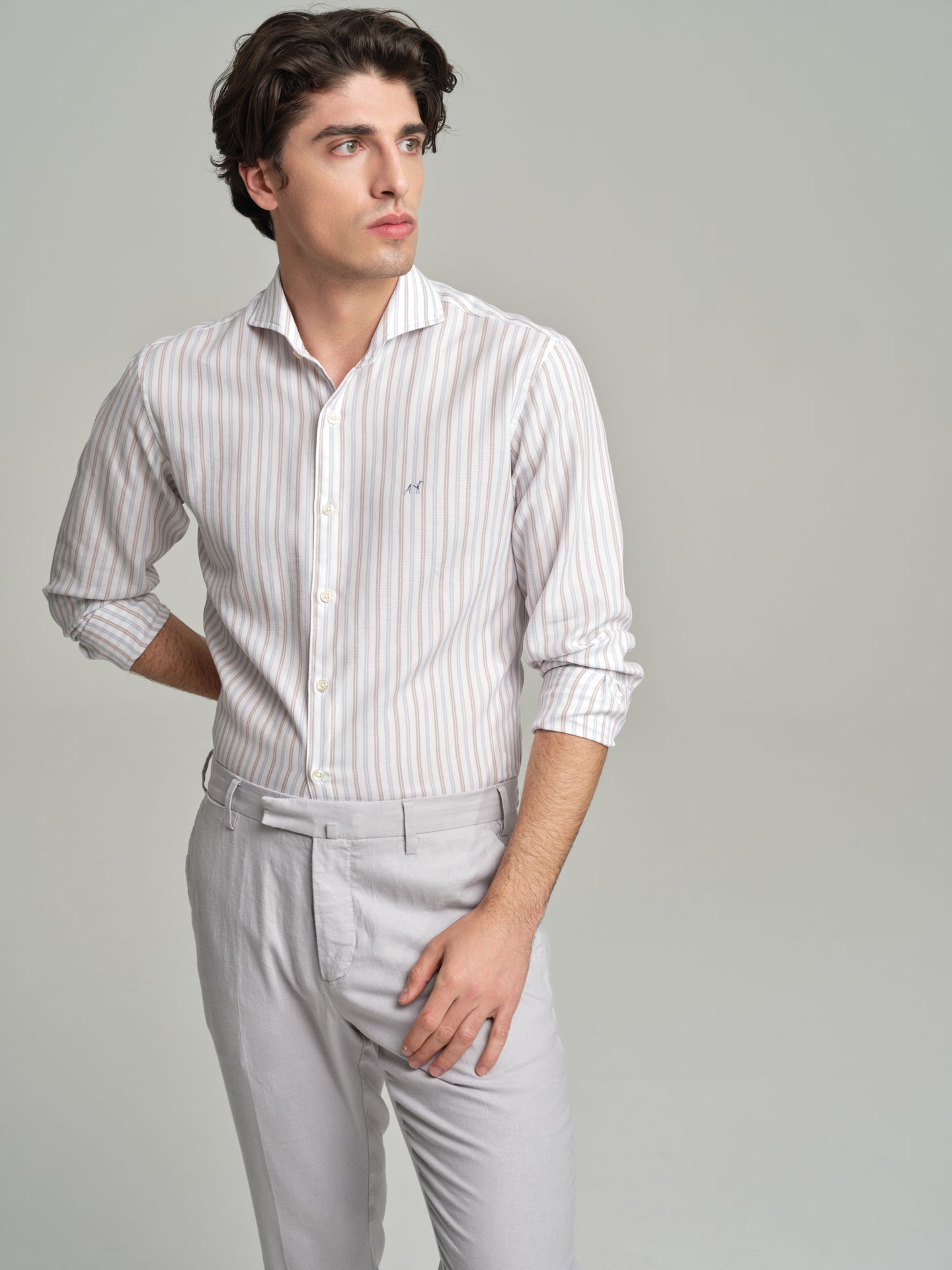Slim fit casual striped piquet structure shirt