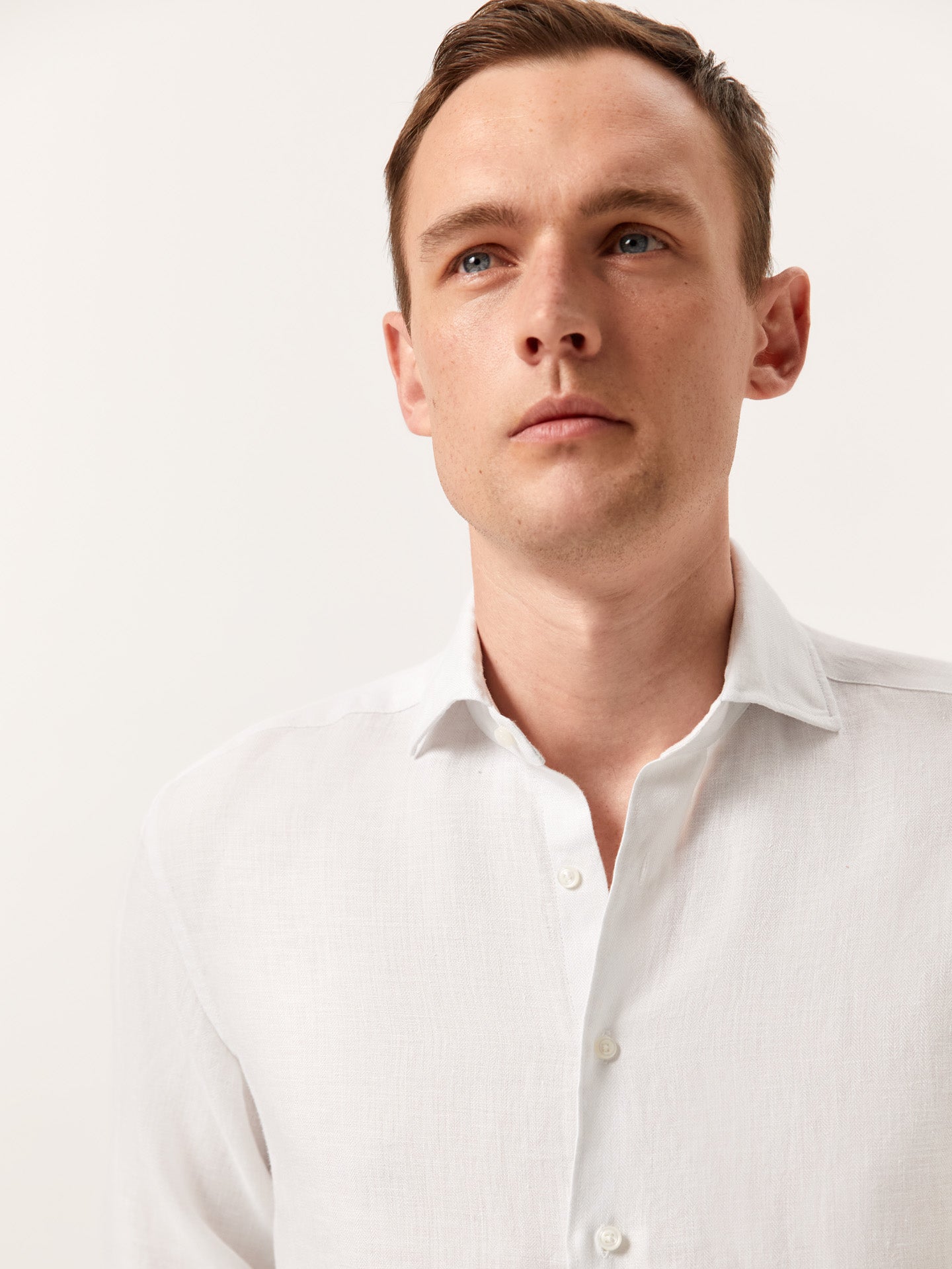 Slim Fit Herringbone Linen Shirt with Newport Collar