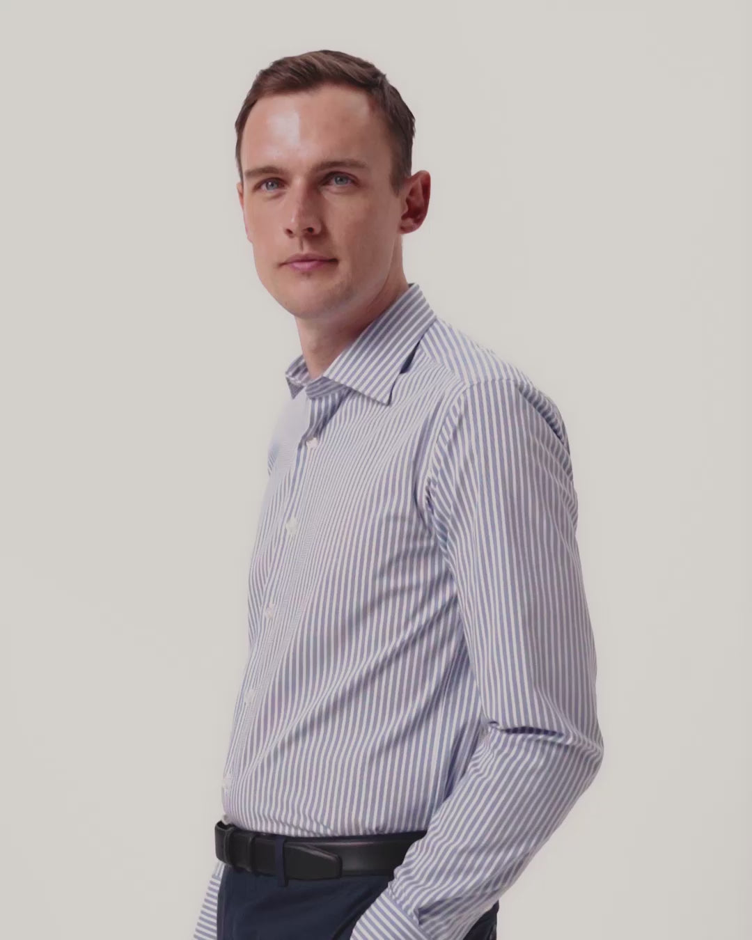 Slim Fit Performance Striped Shirt with Oxford Collar