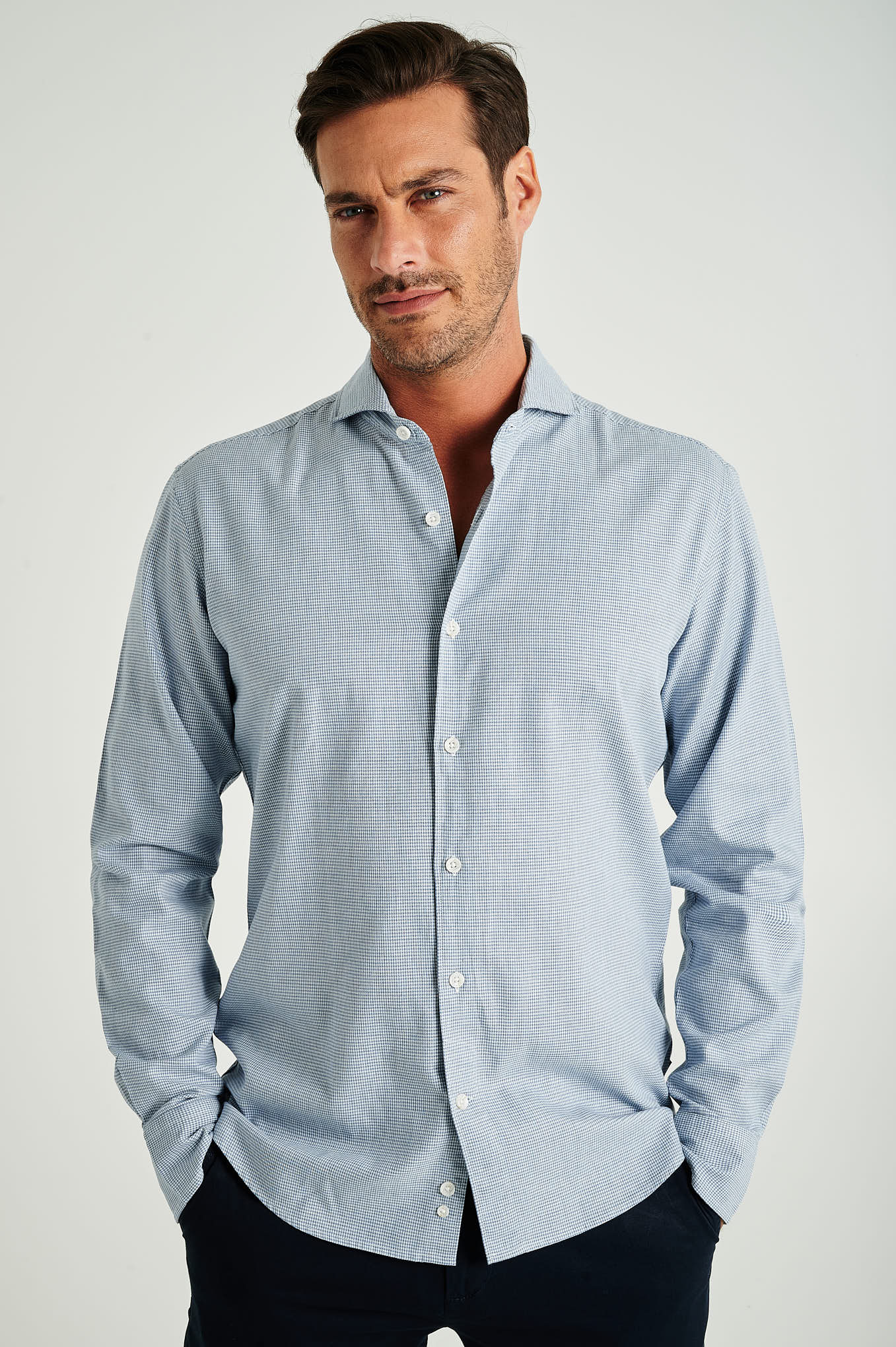 Slim fit pied poule casual shirt