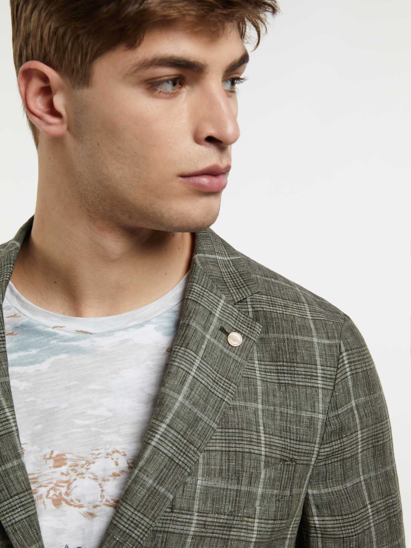 Unstructured Checks Linen Blazer