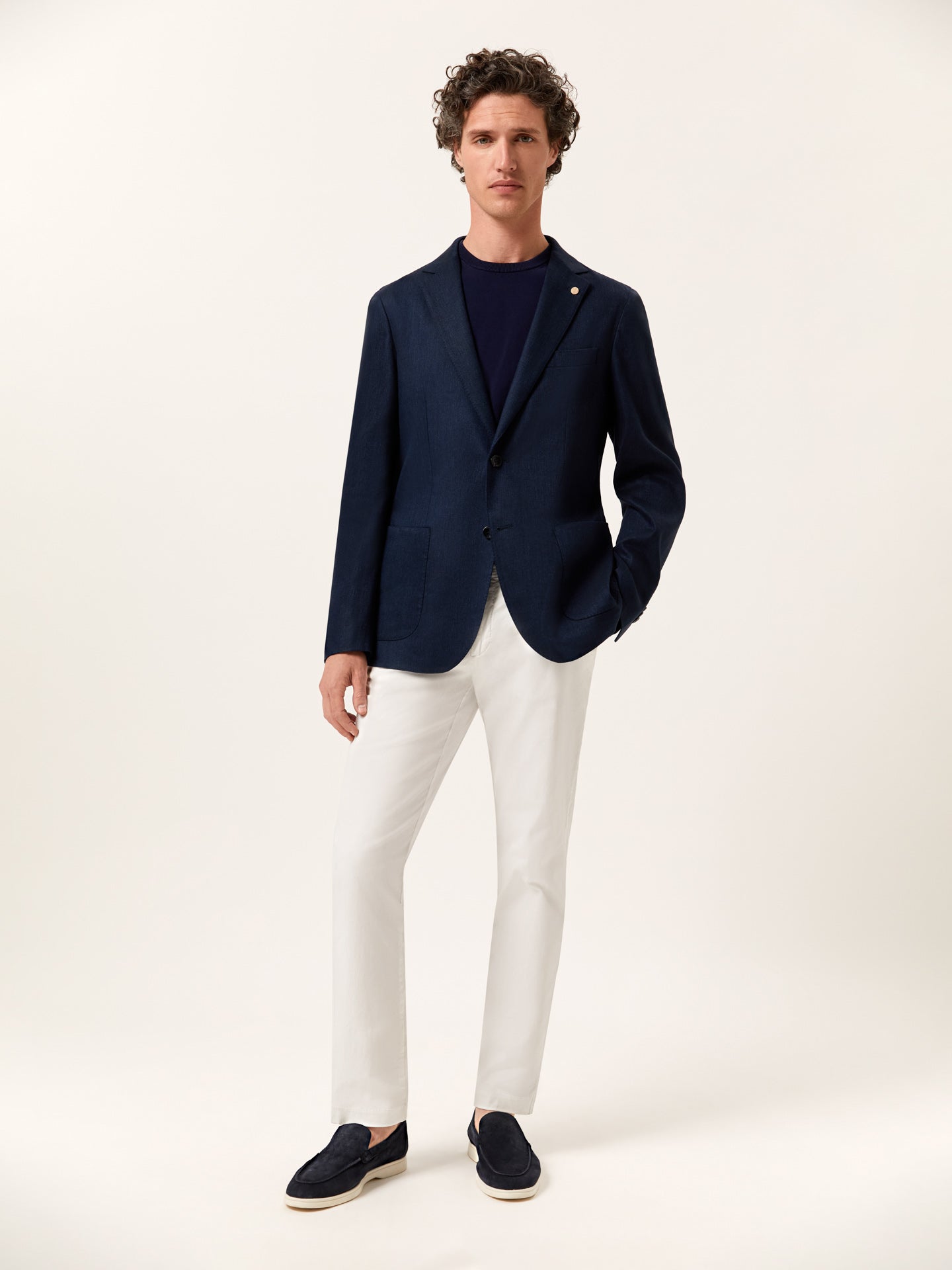 Unstructured Dark Blue Twill Linen-Cotton Blend Blazer