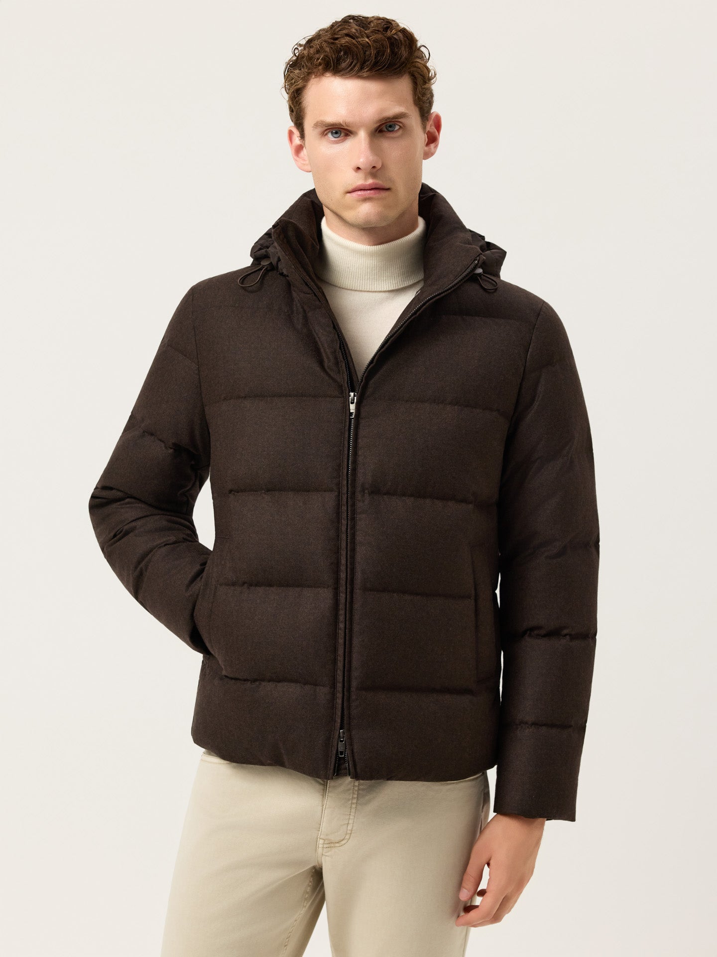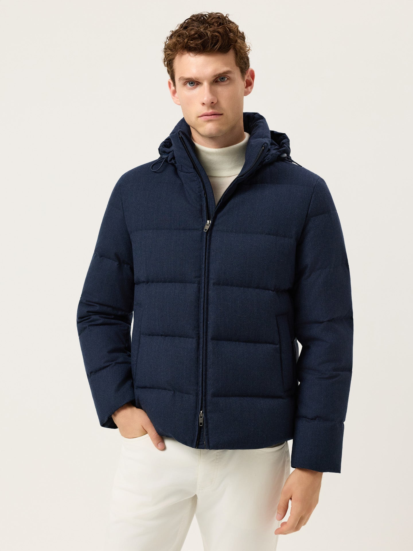 Wool-Blend Quilted Jacket With Removable Hood